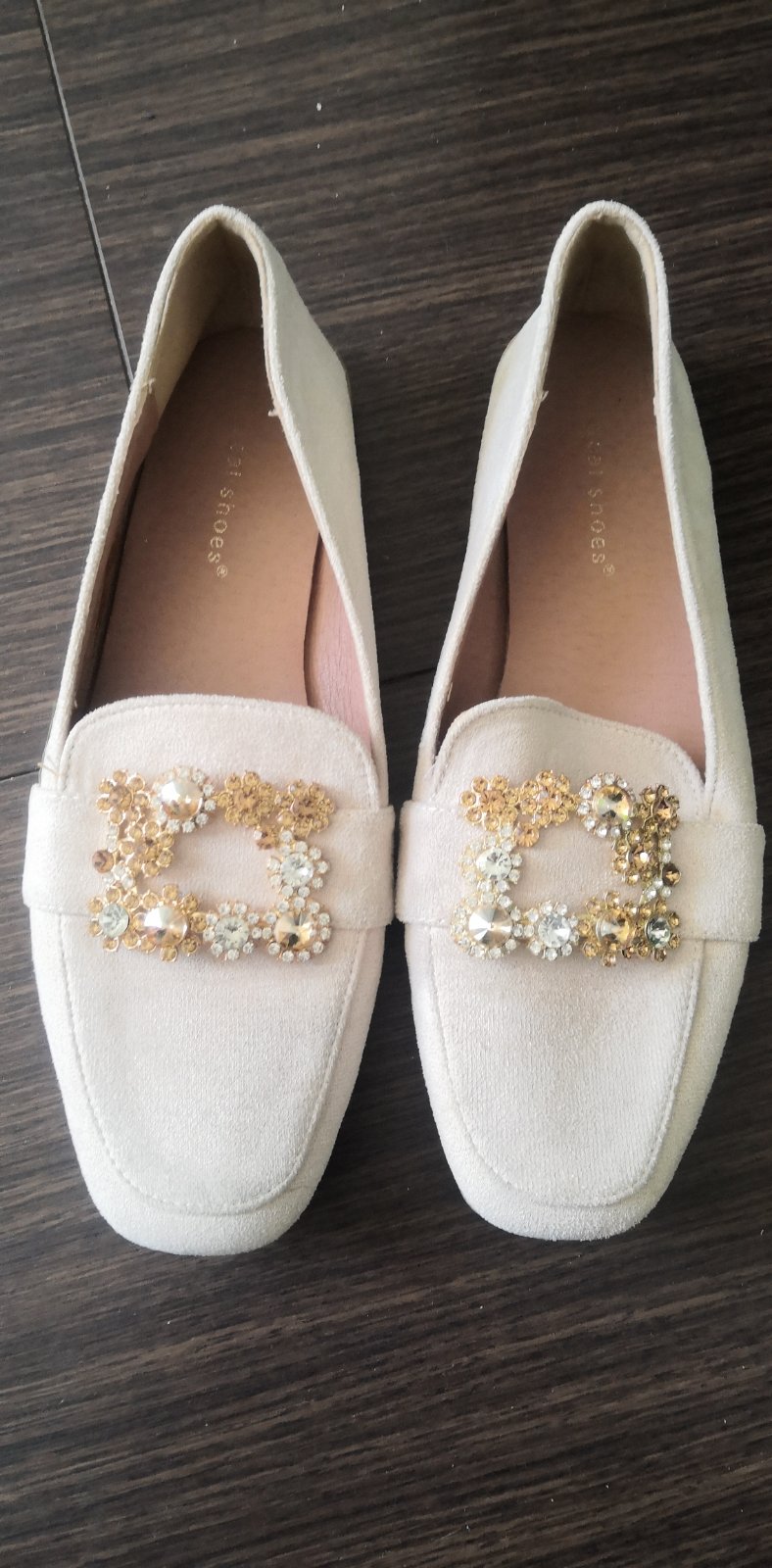 Predam nikdy nenosene kremove kozenne lodicky.Velkost 39 , vnutorna dlzka cca 25,5 cm. Na lavej topanke je drobny modry fliacik ako od pera uz od kupy, po obuti ho ani nevidno, blizsie vid foto. To...