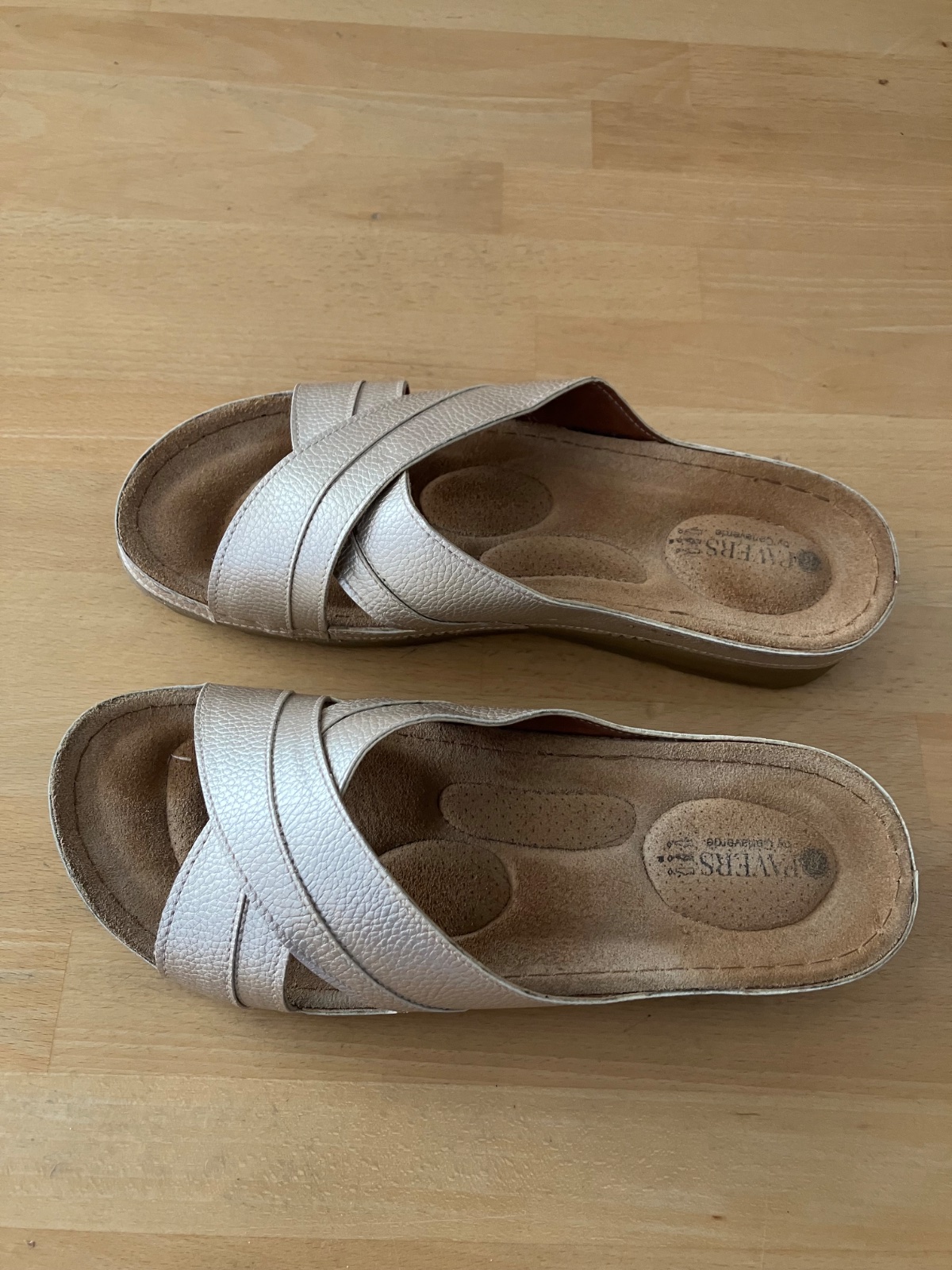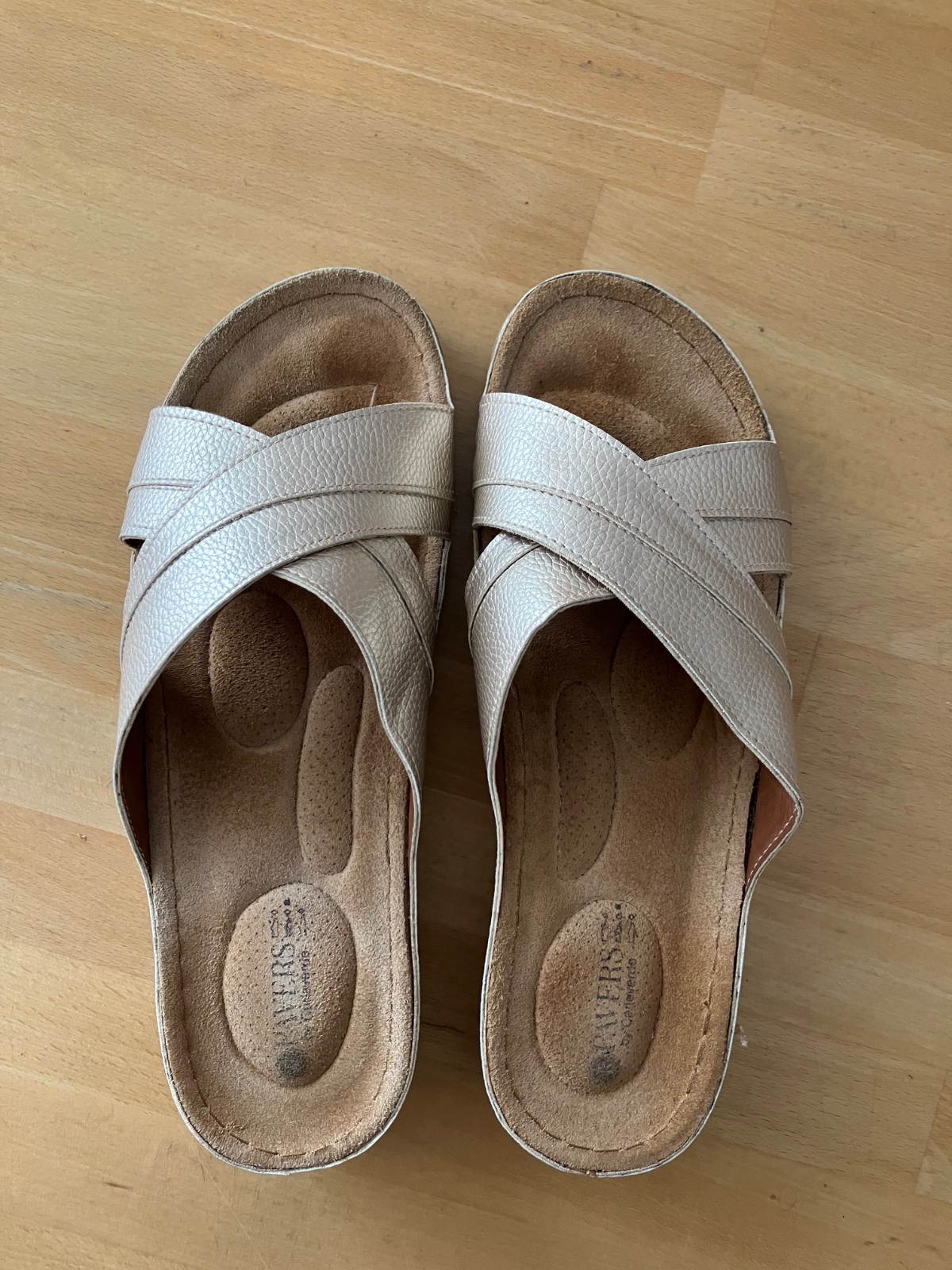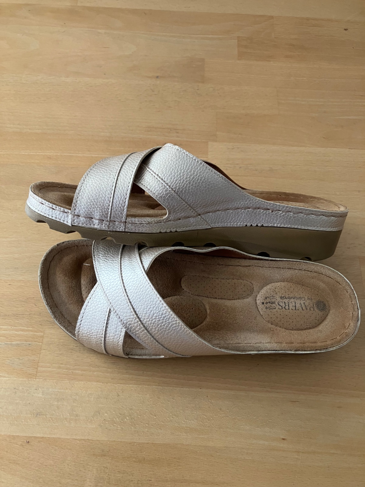 Nové šľapky zlaté so strieborným vybíjaním. Pohodlné. Pozri fotky. Odporúčam.