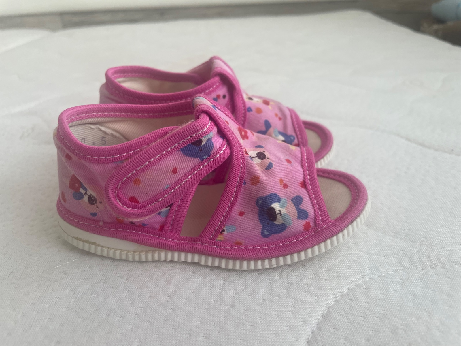 Predám papučky pre dievčatko, sú ako nové, dcéra ich mala obuté max.5x, nestihli sme ich vynosiť. Vnútorná dĺžka 13,5cm