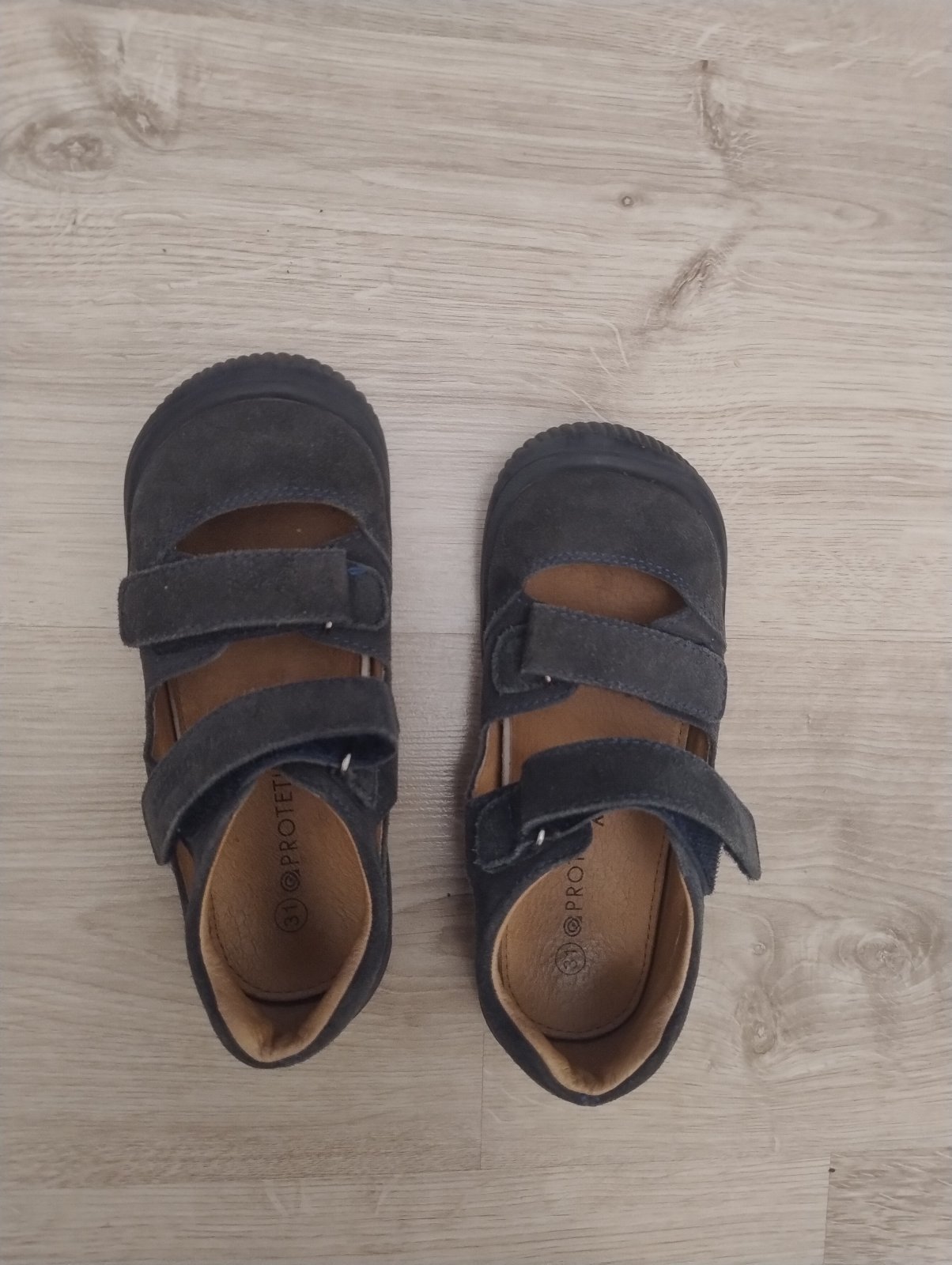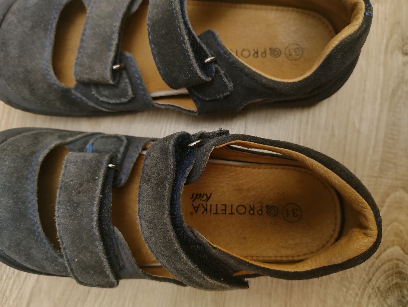 Sivomodrá farba. Málo nosené, zapínanie na suchý zips. Veľmi príjemné na nosenie. Celokožené s koženou výstelkou.