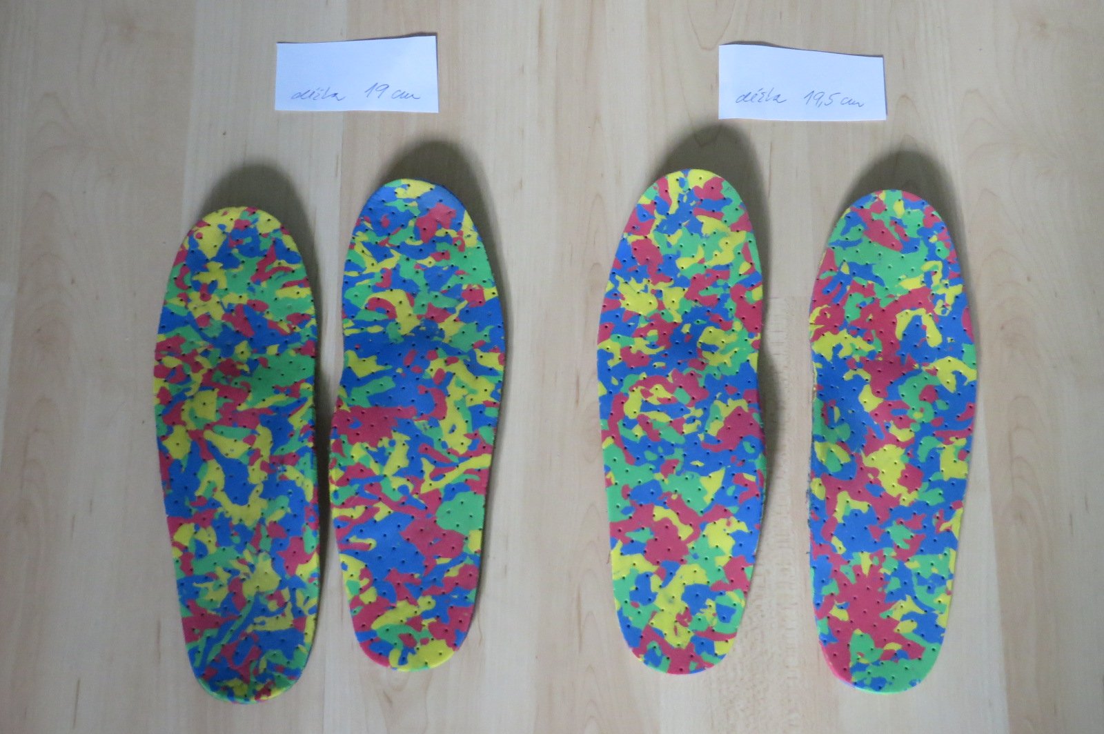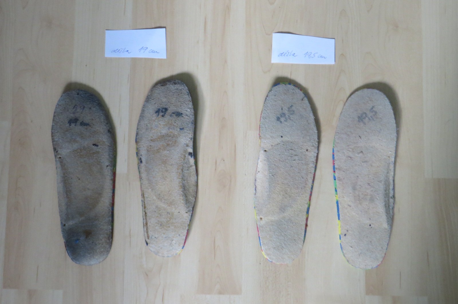 Predám nosené detské ortopedické vložky. Prvé sú veľkosti 29 a majú dĺžku 19 cm, druhé sú veľkosti 30 a majú dĺžku 19,5 cm.