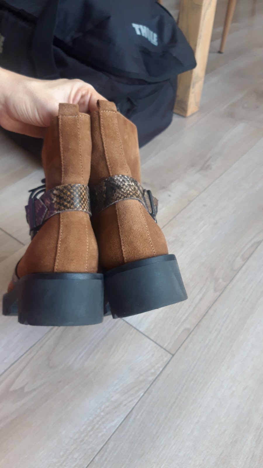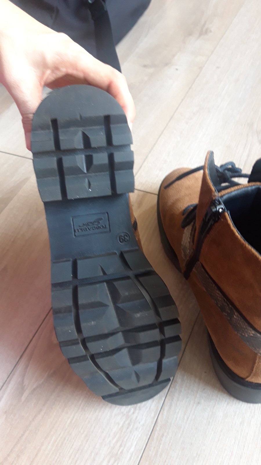 Poltopánky,veľmi pohodlné, brúsená koža, hrubá podrážka, keď nastriekate impregnačným sprejom, môžete použiť aj do vlhkého počasia.Vnútorná dlžka 25,5 cm.Cena 7€.. Poštovné podla poštoveho cenníka ...