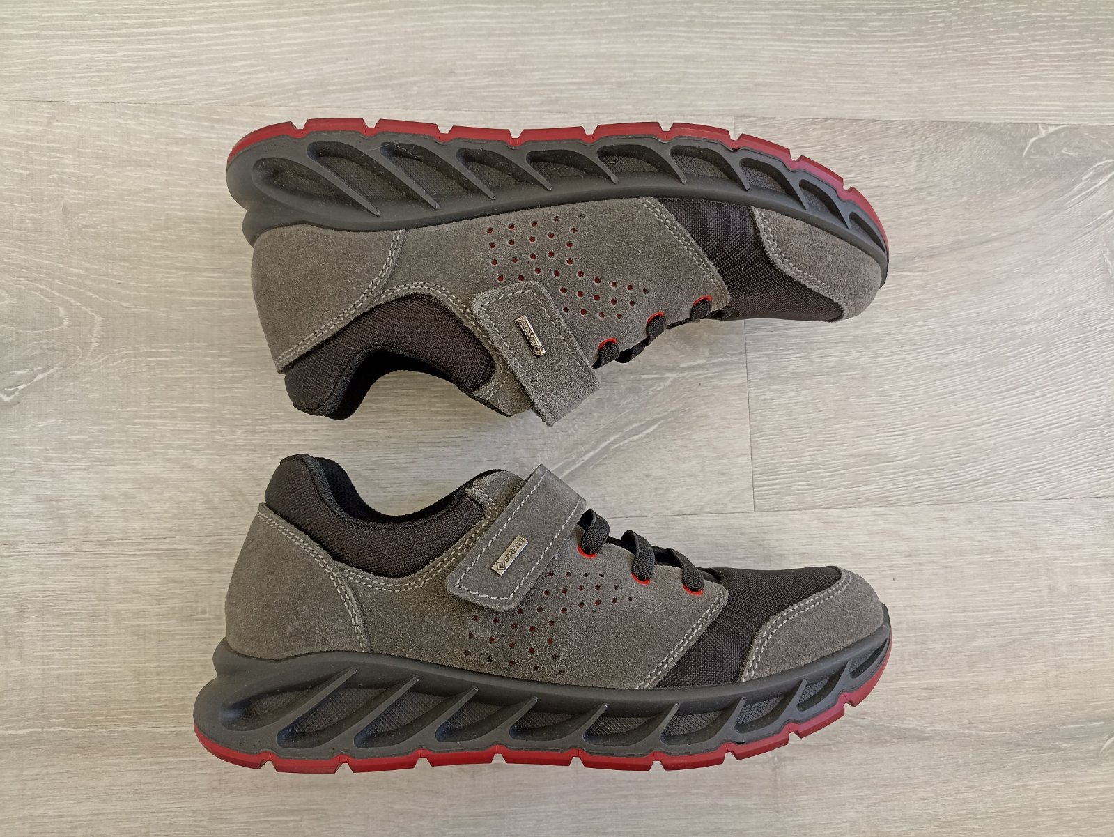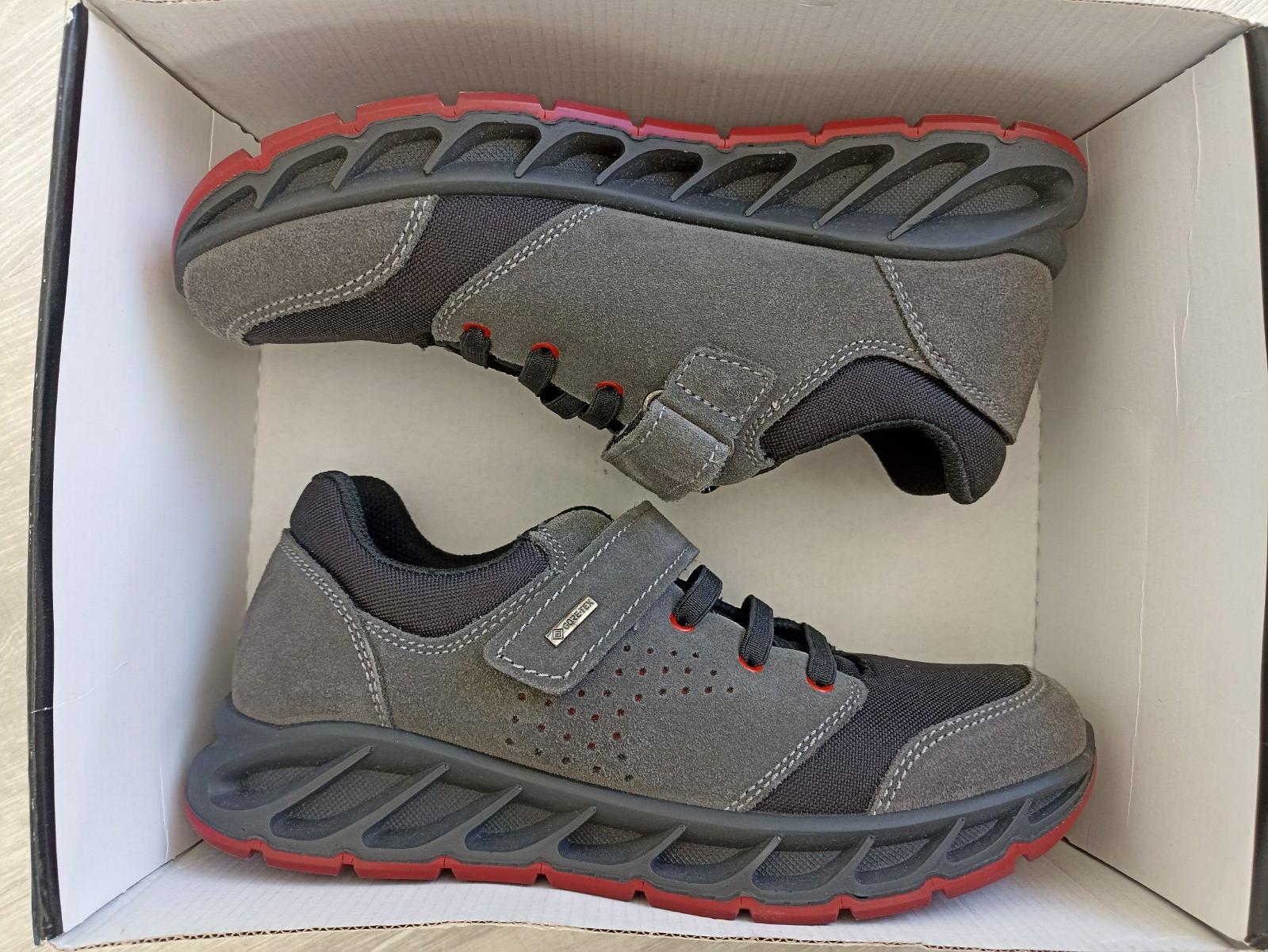 Nové nenosené kožené tenisky s Gore-Tex membránou, nepremokavé, pohodlne sa obúvajú, elastické šnúrky a suchý zips.