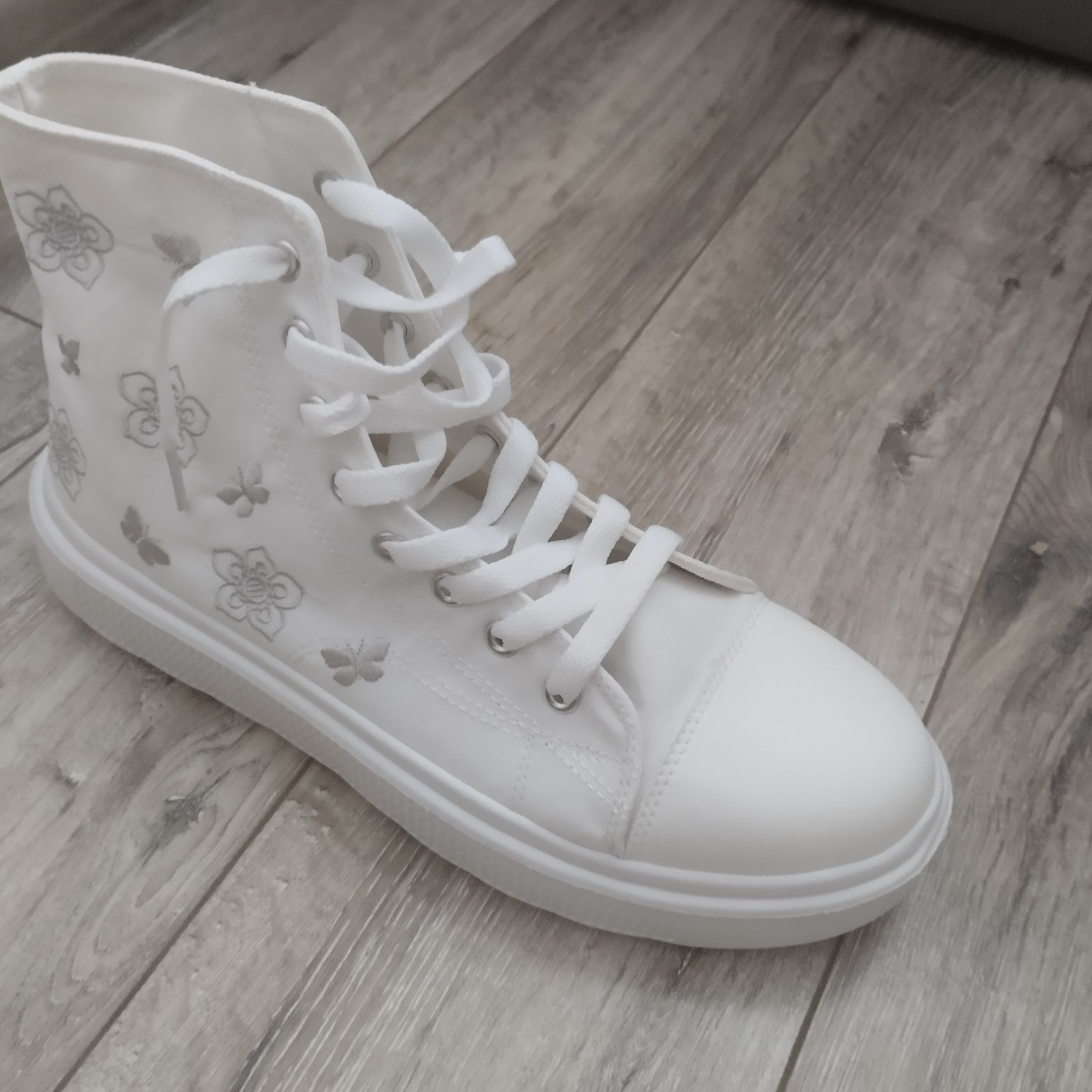 Predám dámske tenisky bielej farby značky Mustang, veľkosť 42, po bokoch je krajka