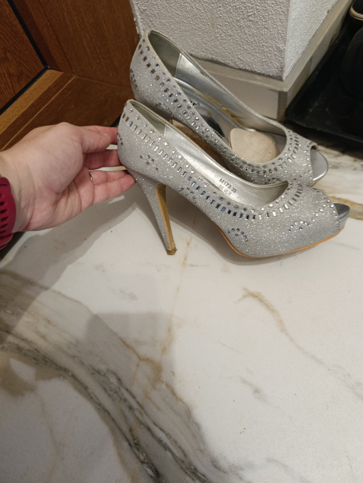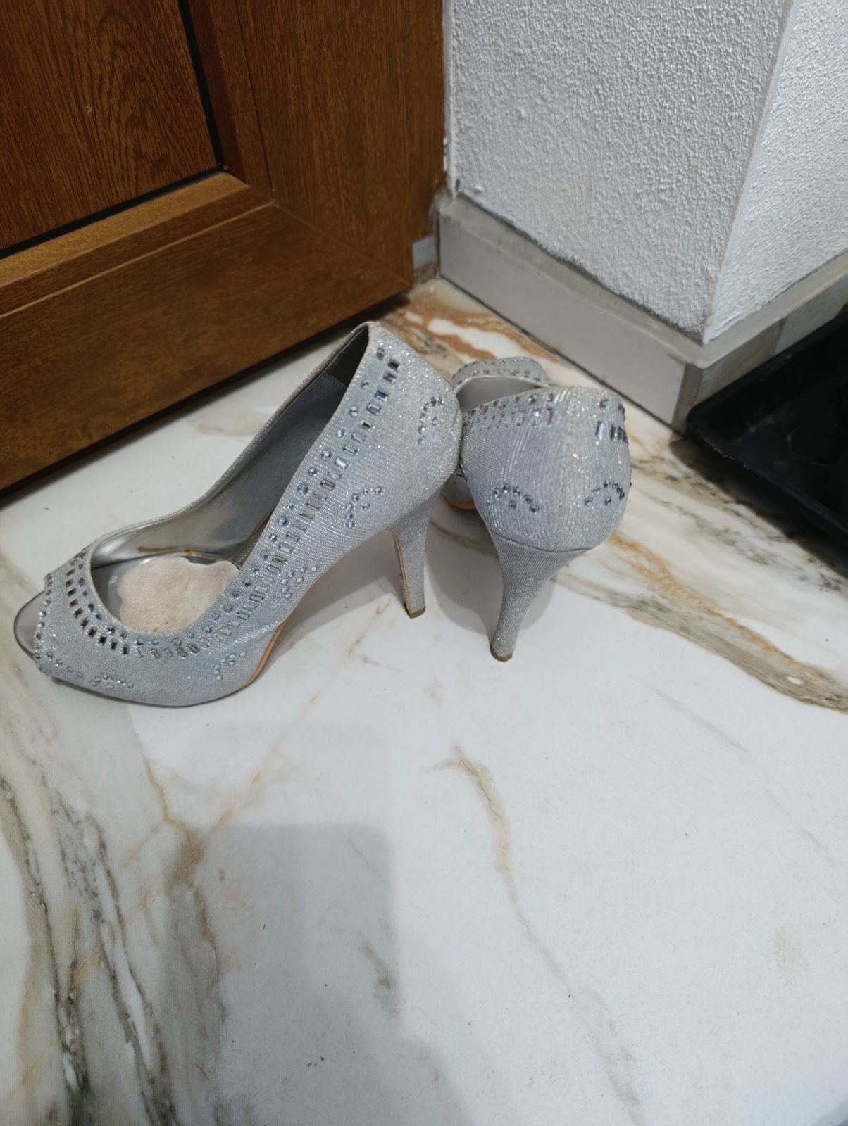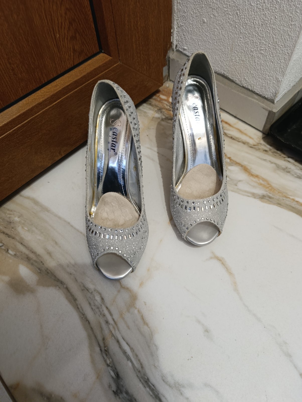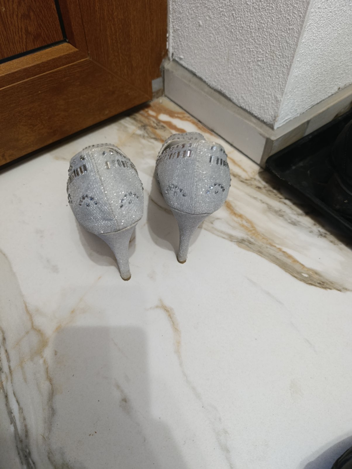 Krásne strieborné lodičky s kamienkami,obuté 2x, bez známok poškodenia