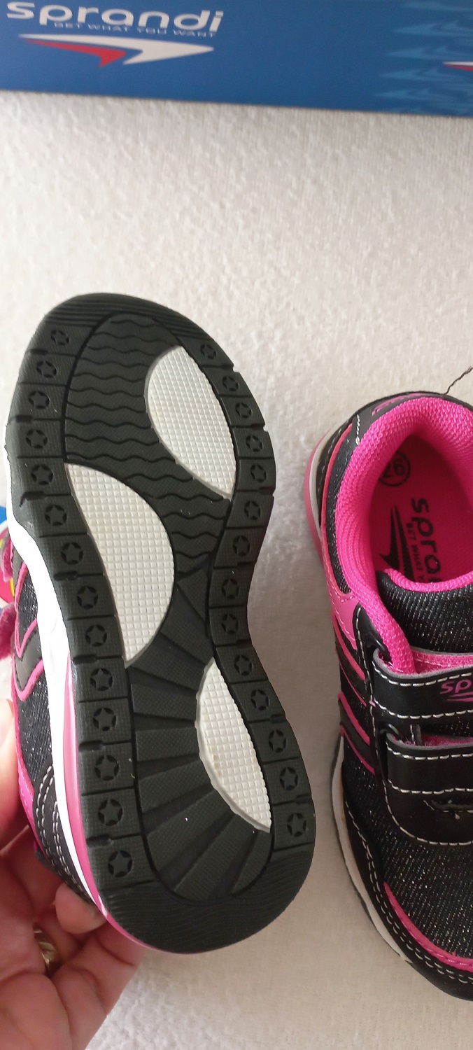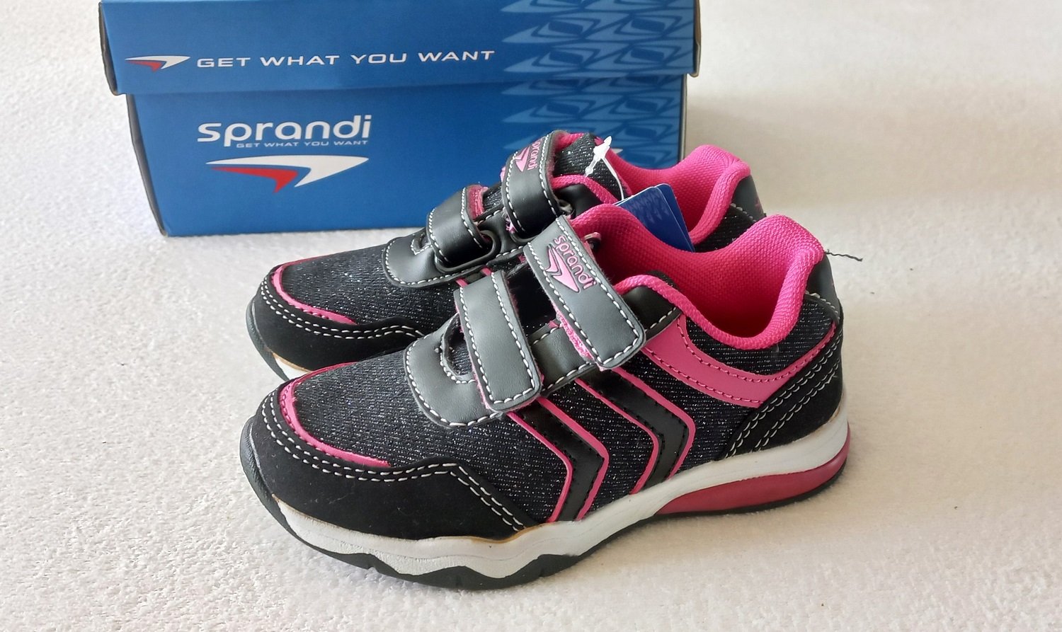 Čierno-ružové tenisky, veľkosť 26, značka Sprandi. Nové, v pôvodnom balení, vhodné aj ako darček. Vnútorná dĺžka je 16 cm. Mám viacero detských aj dámskych vecí, môžete si zostaviť vlastný balíček. Pri kúpe viac vecí sa rada dohodnem na zľave.