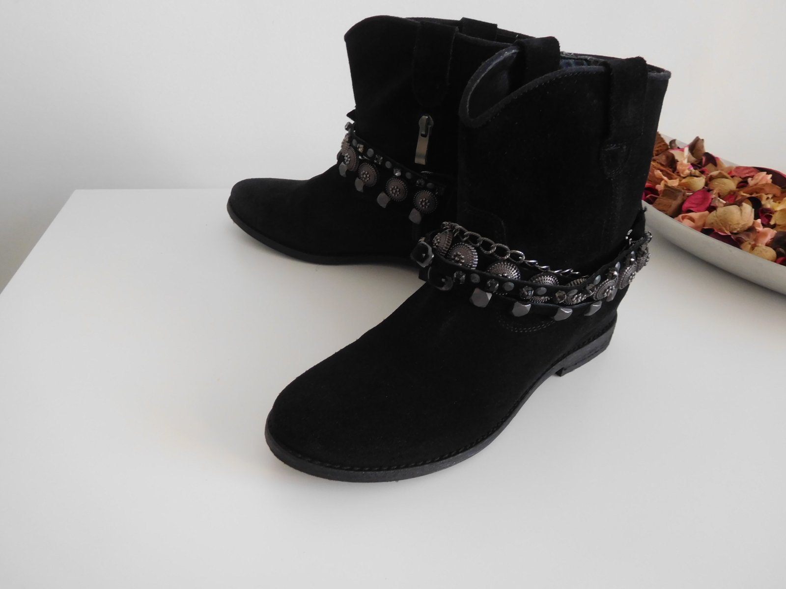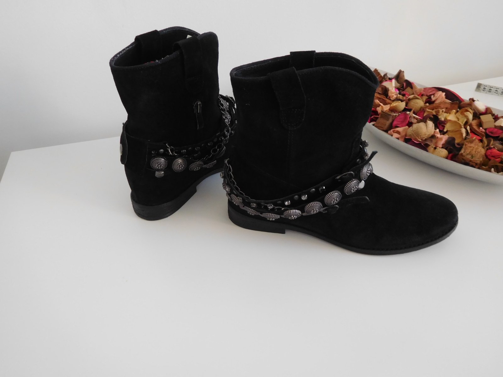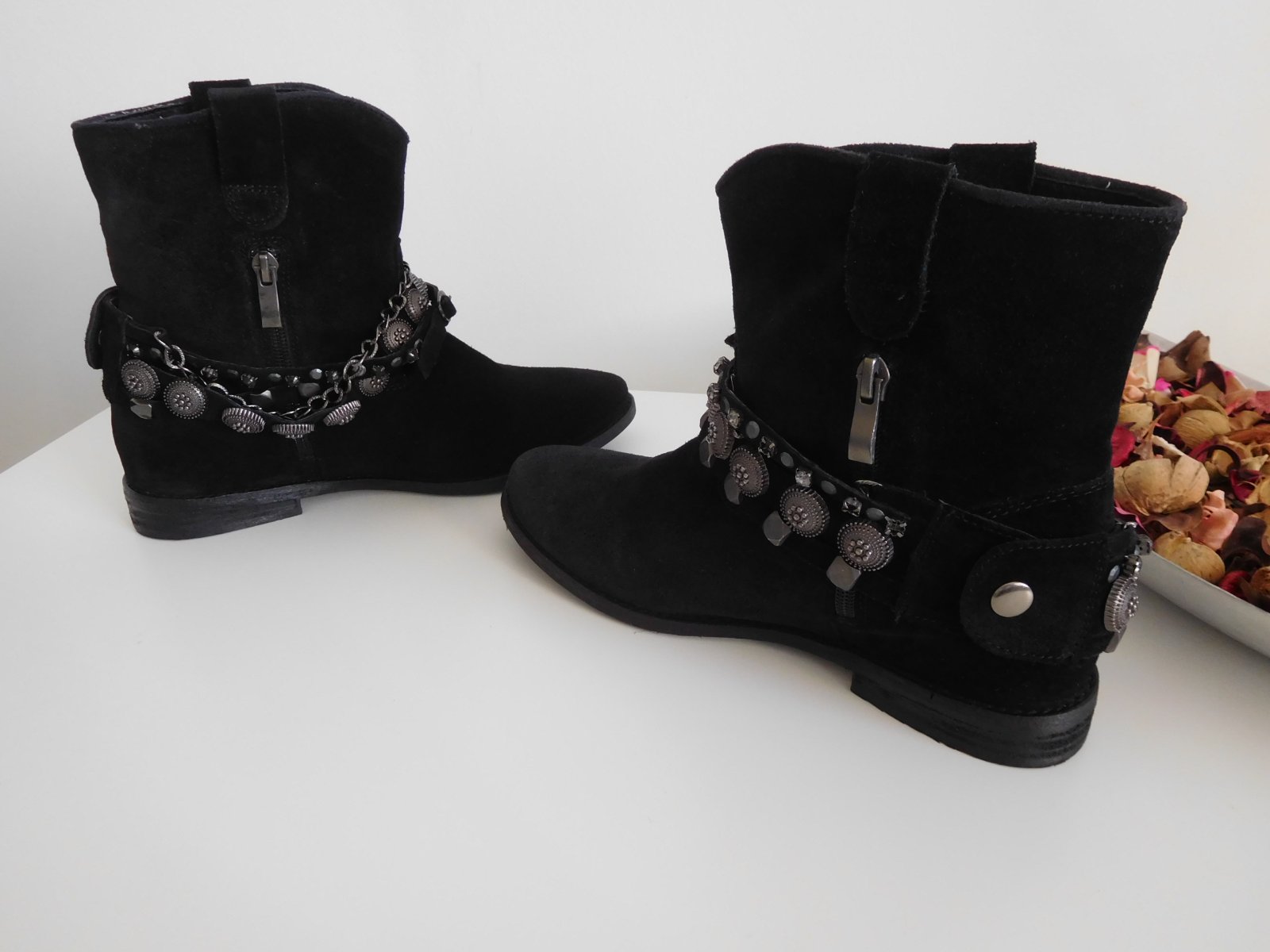 Ponúkam na predaj celokoženú kotníkovú dámsku obuv-LAVORAZIONE ARTIGIANALE - na miernom opatku-vo veľkosti-38-vnútorná dlžka 24 cm, obuv je veľmi veľmi pohodlná, po bokoch z vnútornej strany sú zipsy aby sa ľahšie obúvala, topánočky sú nepoškodené, čisté, mekké, pekne sedia na nožke.