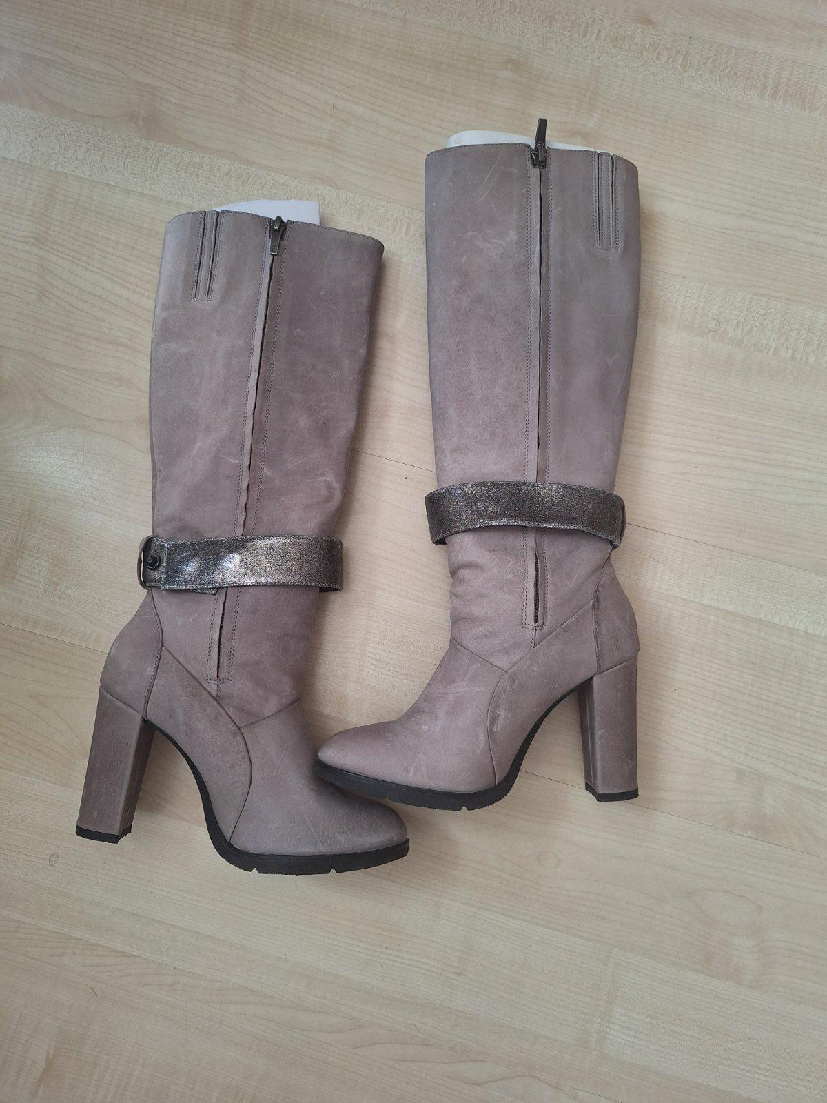 Kožené čižmy Wojas, veľkosť 37. Obuté len 2-3 x. Potom som si zlomila nárt a už nemôžem nosiť vyššie topánky.