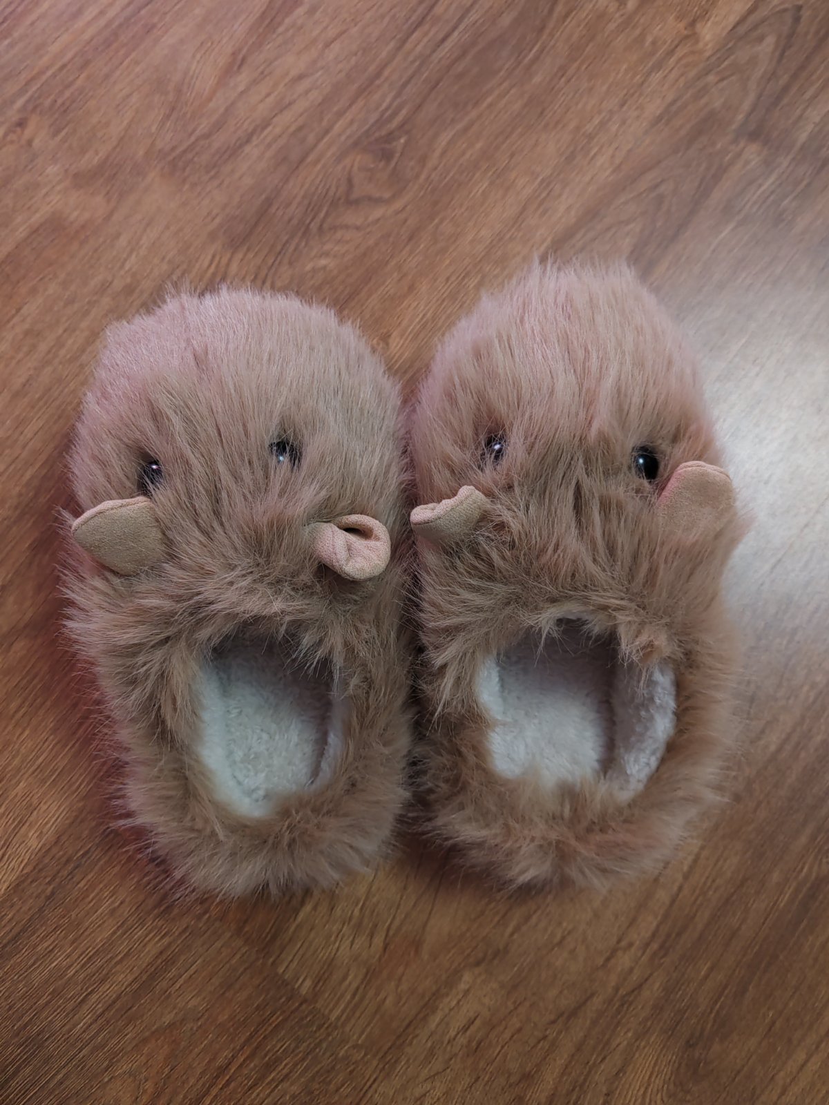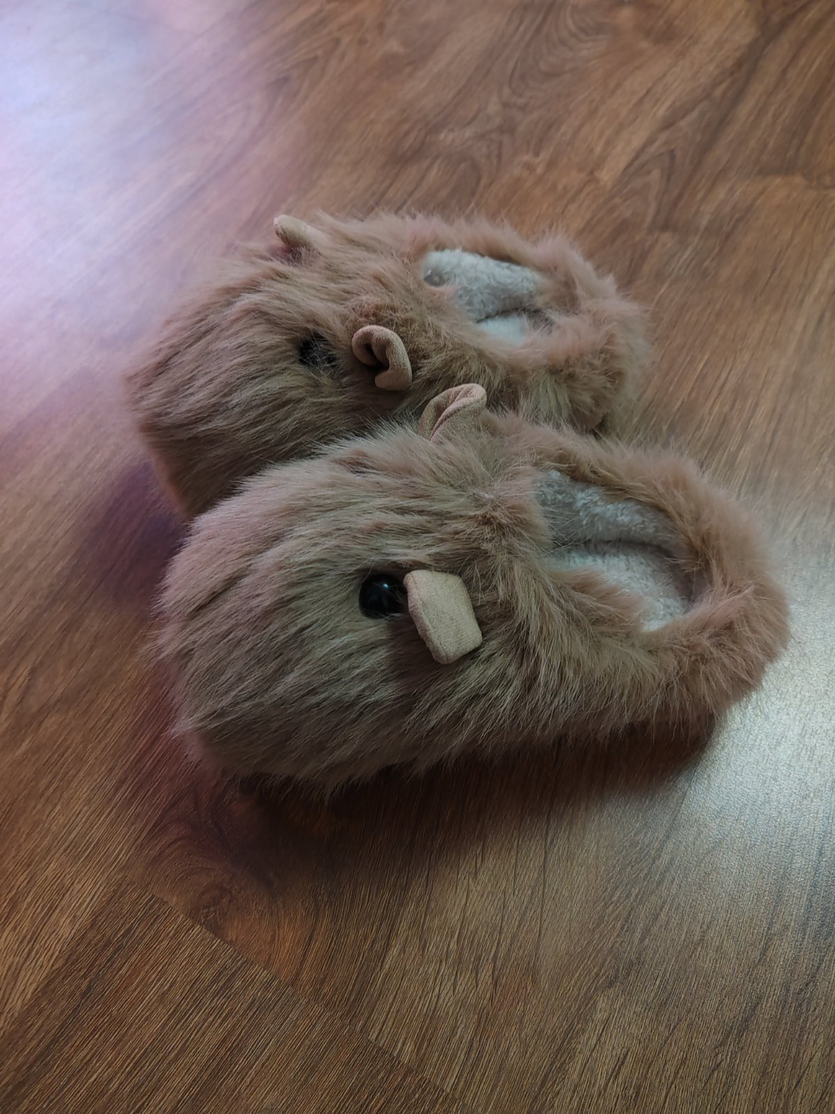 Pekné pohodlné mäkké papučky v nosenom stave, päty sú trochu udupané, vnútorná dĺžka 22cm.