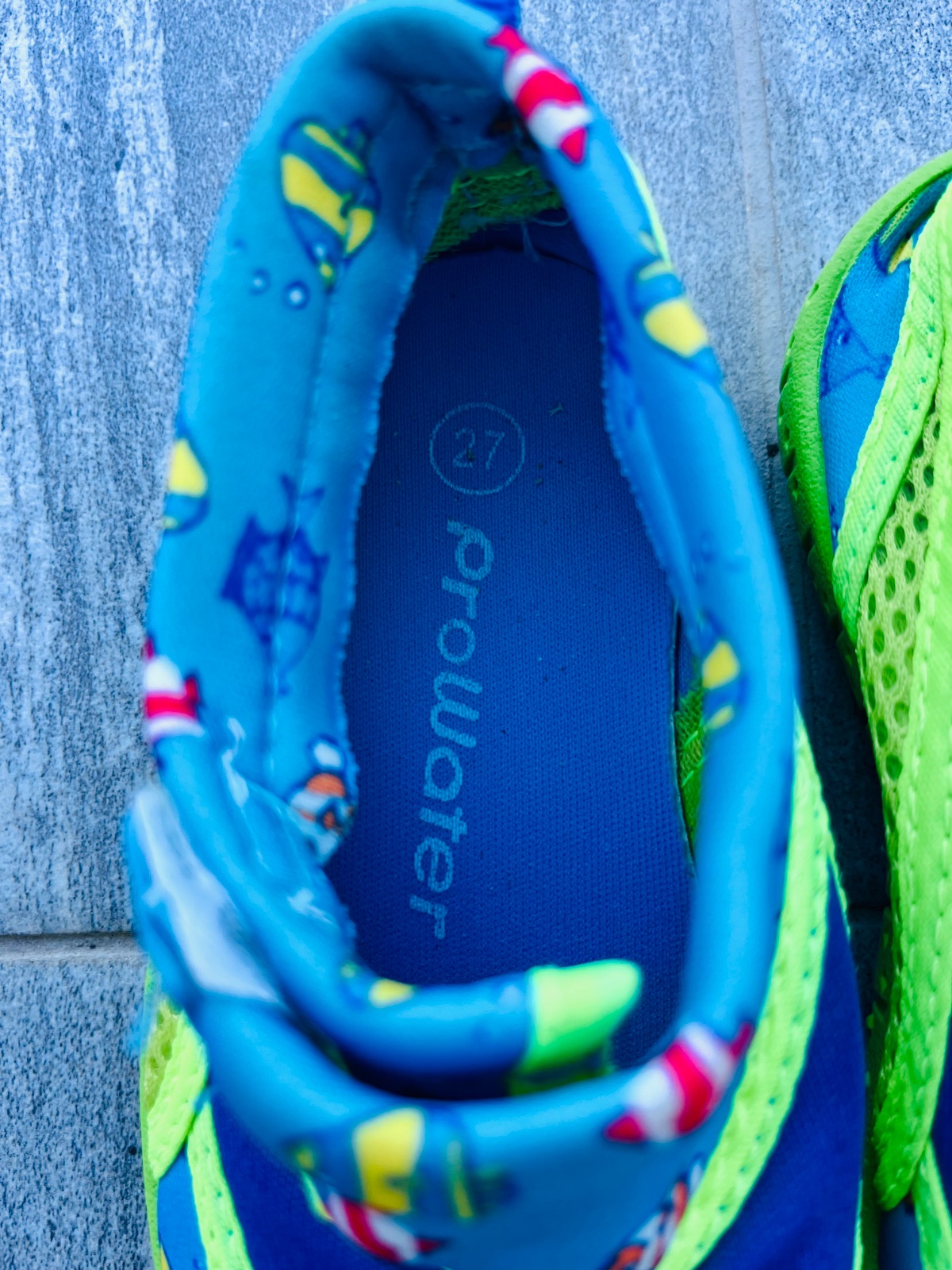 Topánky do vody obuté par krát pri bazéne, na jednej sa odlepila tá vnútorná látka, ale inak v dobrom stave. VD 17 až 17,5 cm