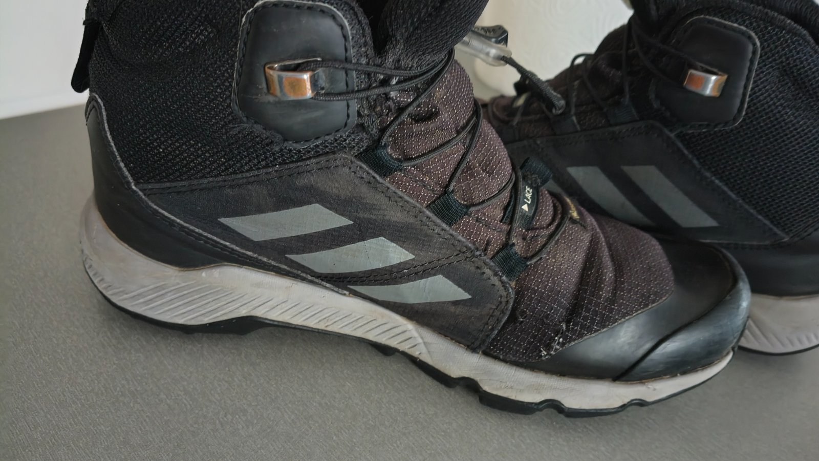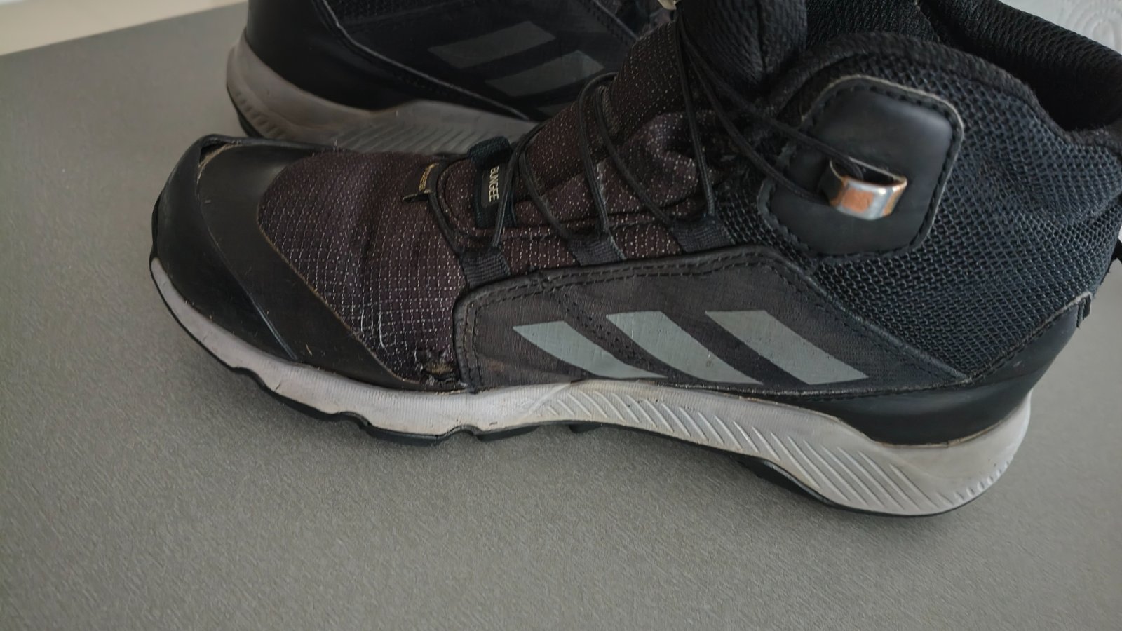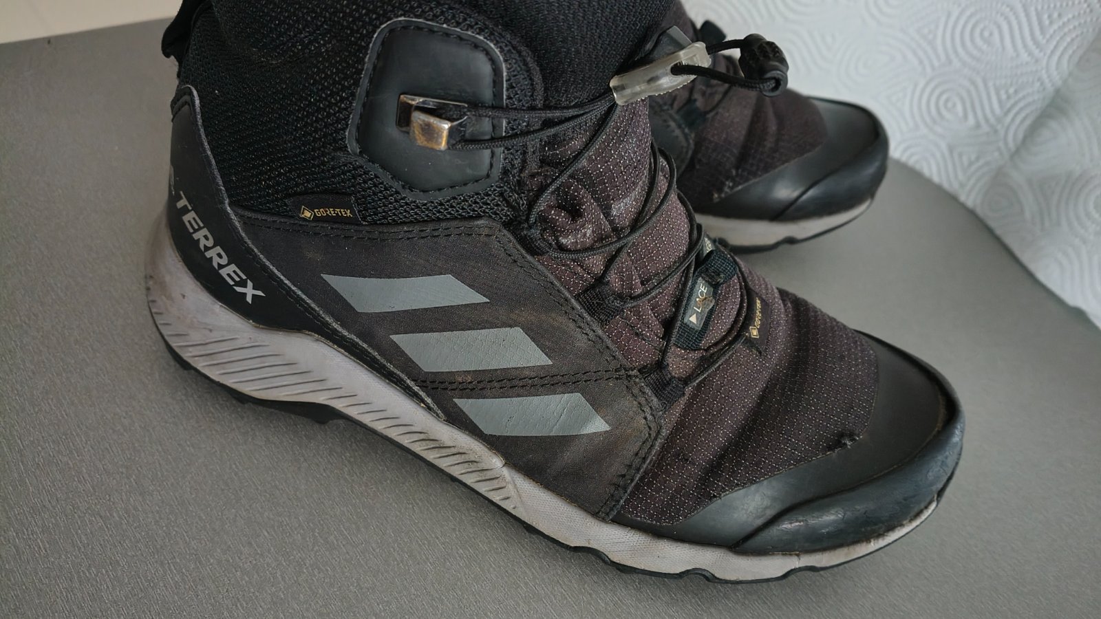 Predám používané Gore-Tex vysoké tenisky po mojich deťoch. Už majú malé vady, no stále sú funkčné. Na donosenie. Na oboch teniskách je vrchná látka s dierkami, ale durchové diery tam nie sú (sú len povrchové).