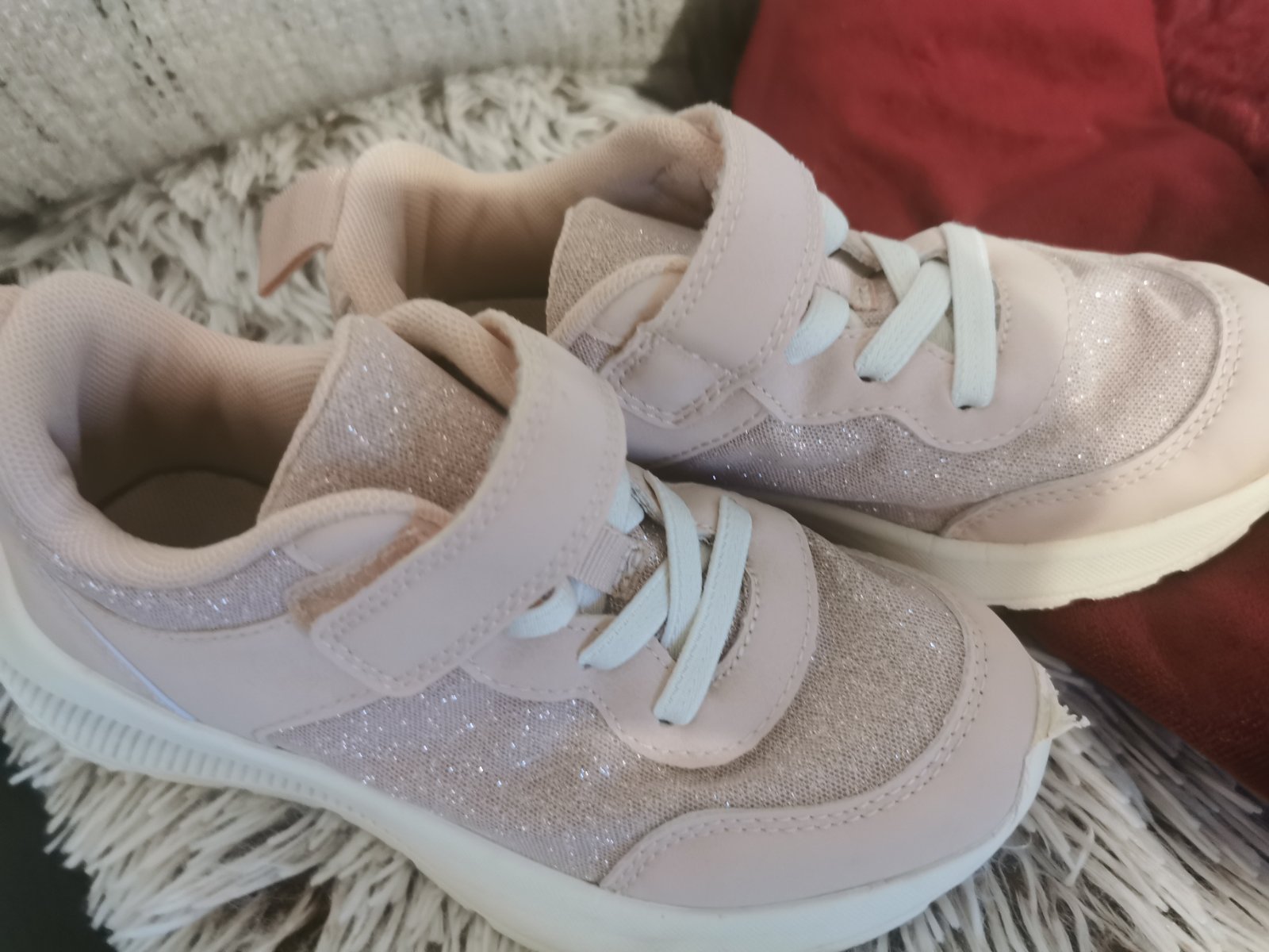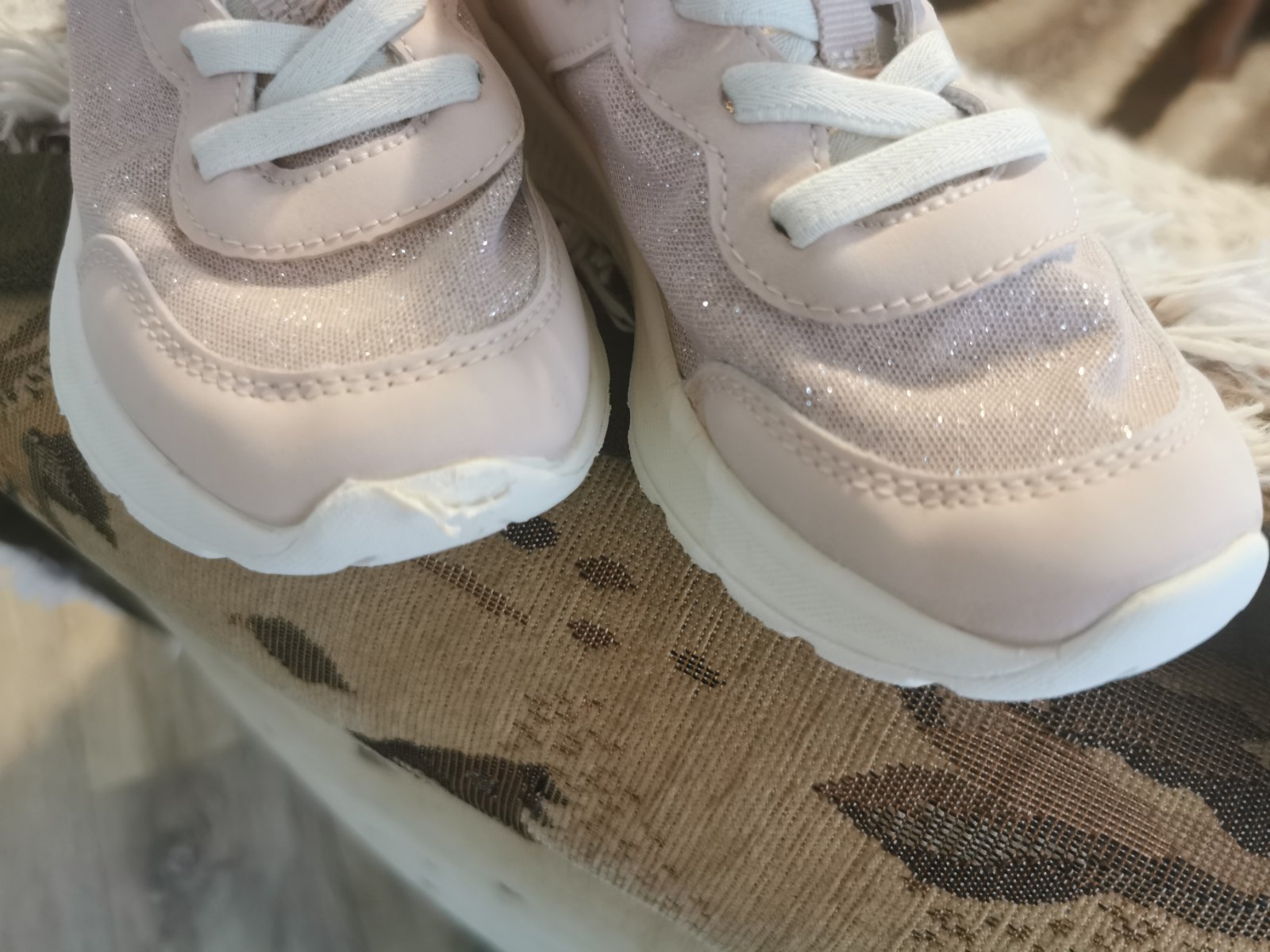 Vnutorna dĺžka 18.5 cm. Na zips. Dobre sa obuvali. Nosené do škôlky. Vonkajsia dĺžka 20cm.kopnute spicky. Zatrete farbou na textil. Vidno pri blizsom pohľade. Do skolky ešte poslúžia.