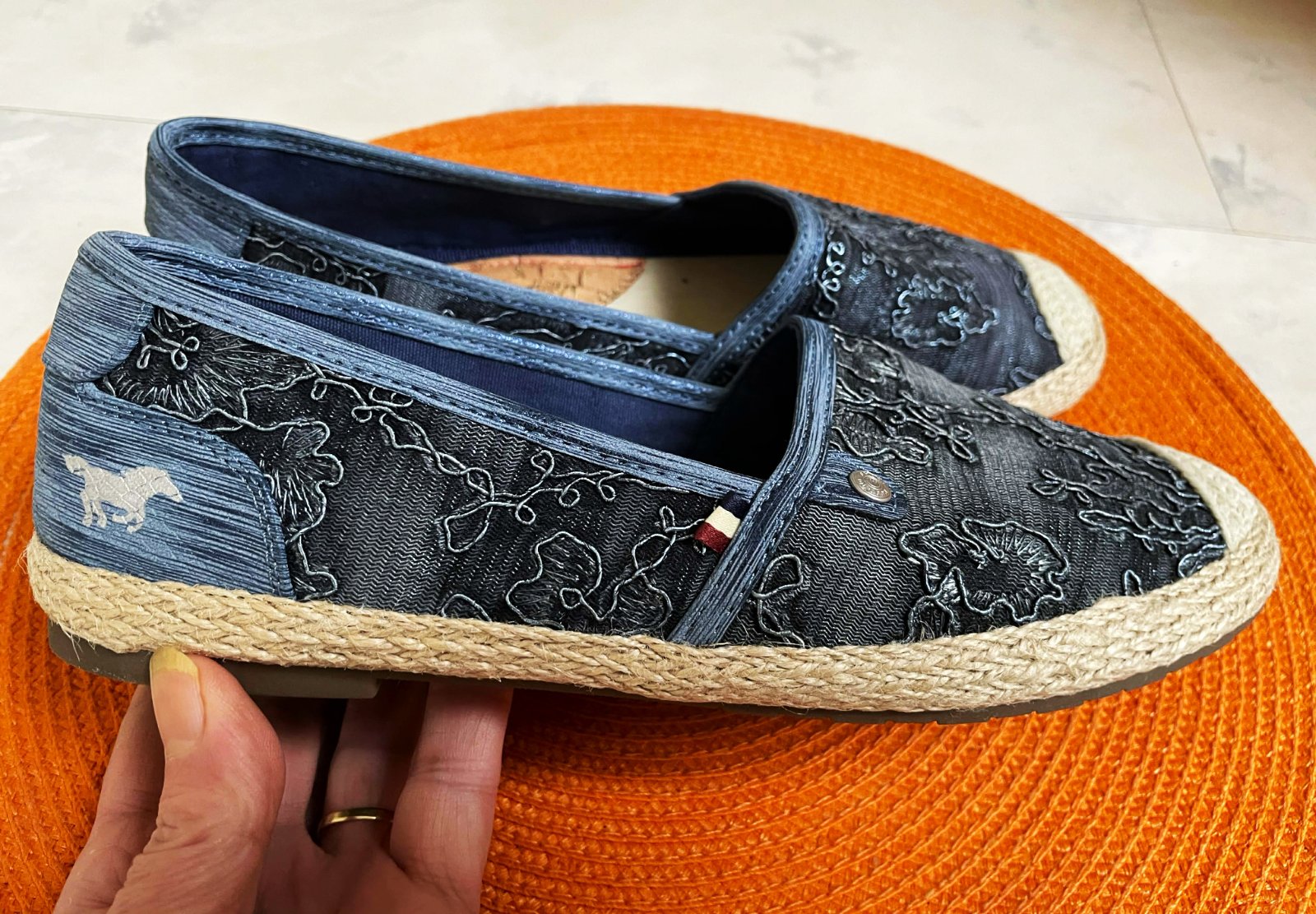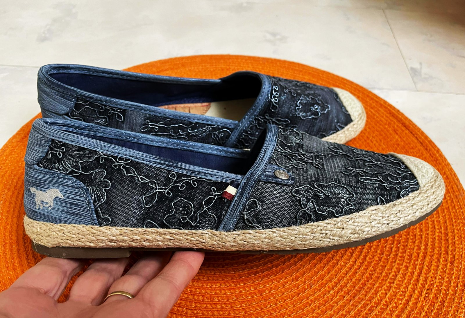 nádherné značkové kvalitné espadrilky,raz obuté - ako nové, top stav a kvalita, veľmi komfortná podrážka a super vypracovanie,krásna farba . navy modrá,vn. dlžka = 24 cm