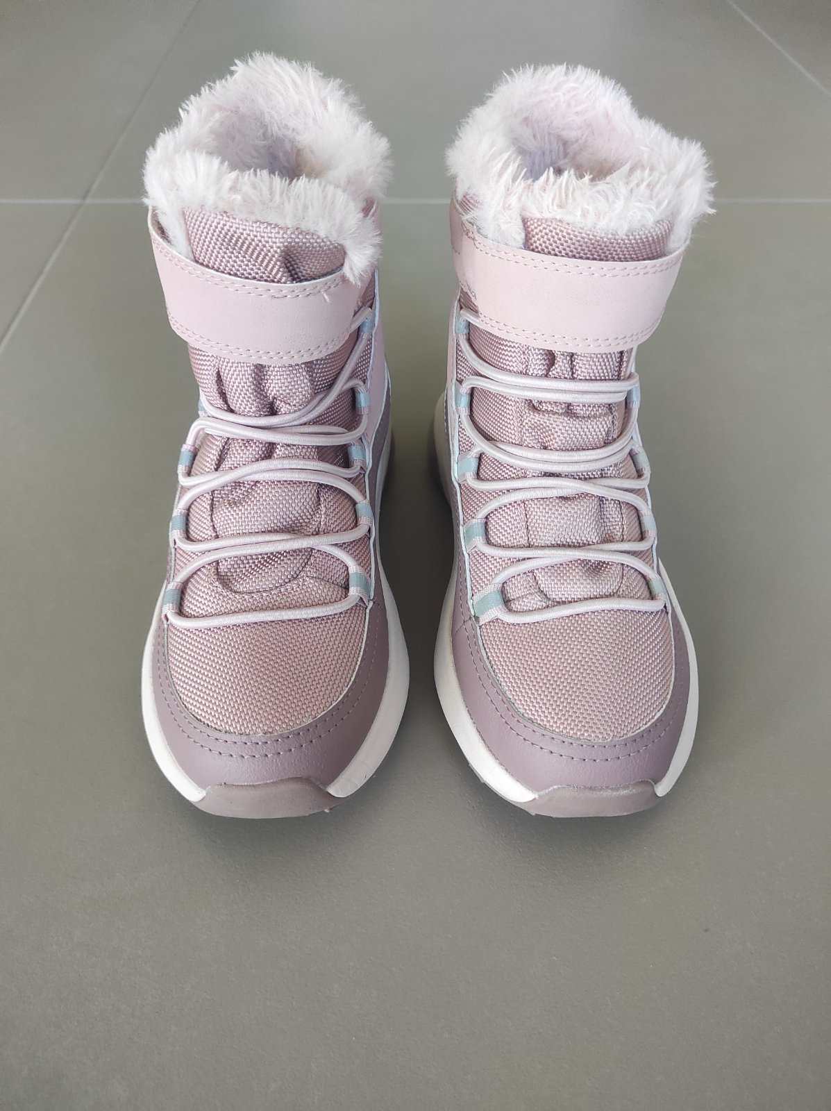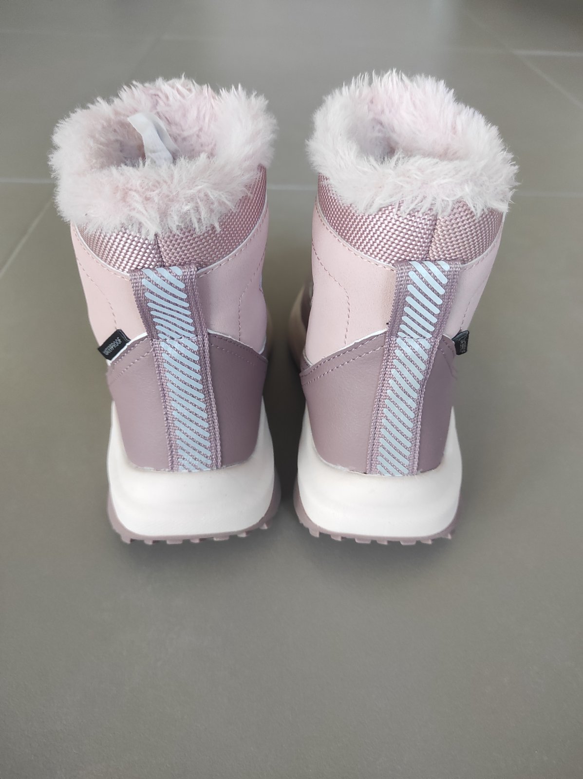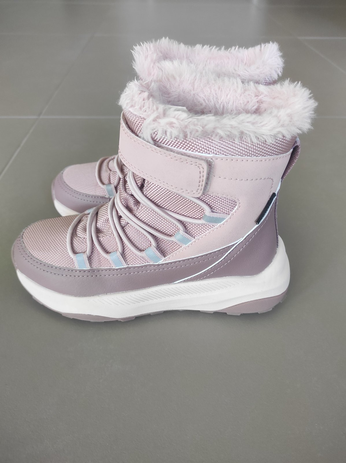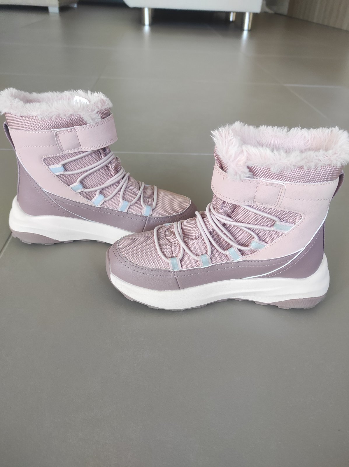 Nase oblubene topanky, mame ich kazdy rok:) zapinanie na suchy zips, waterproof, vnutorna dlzka 19,5cm. Na lavej topanke je odreta spicka ale noc hrozne a urcite este posluzia na šantenie vonku
