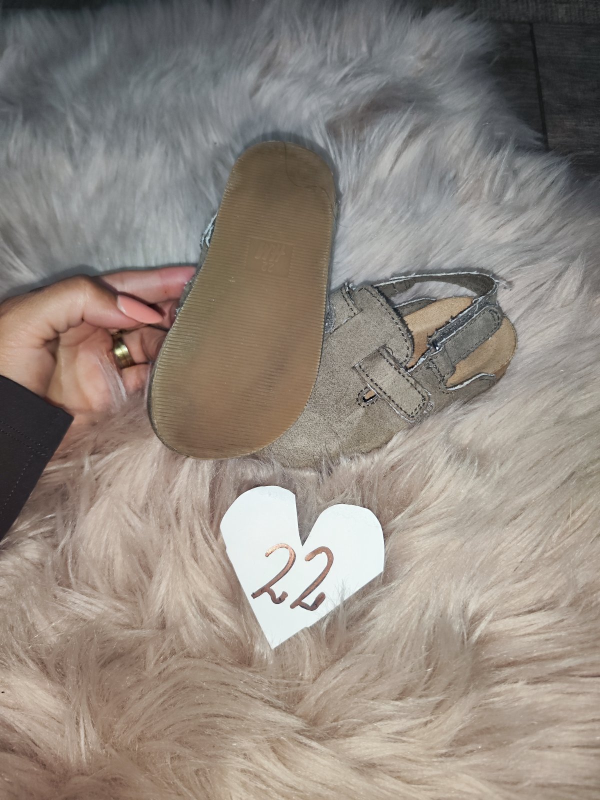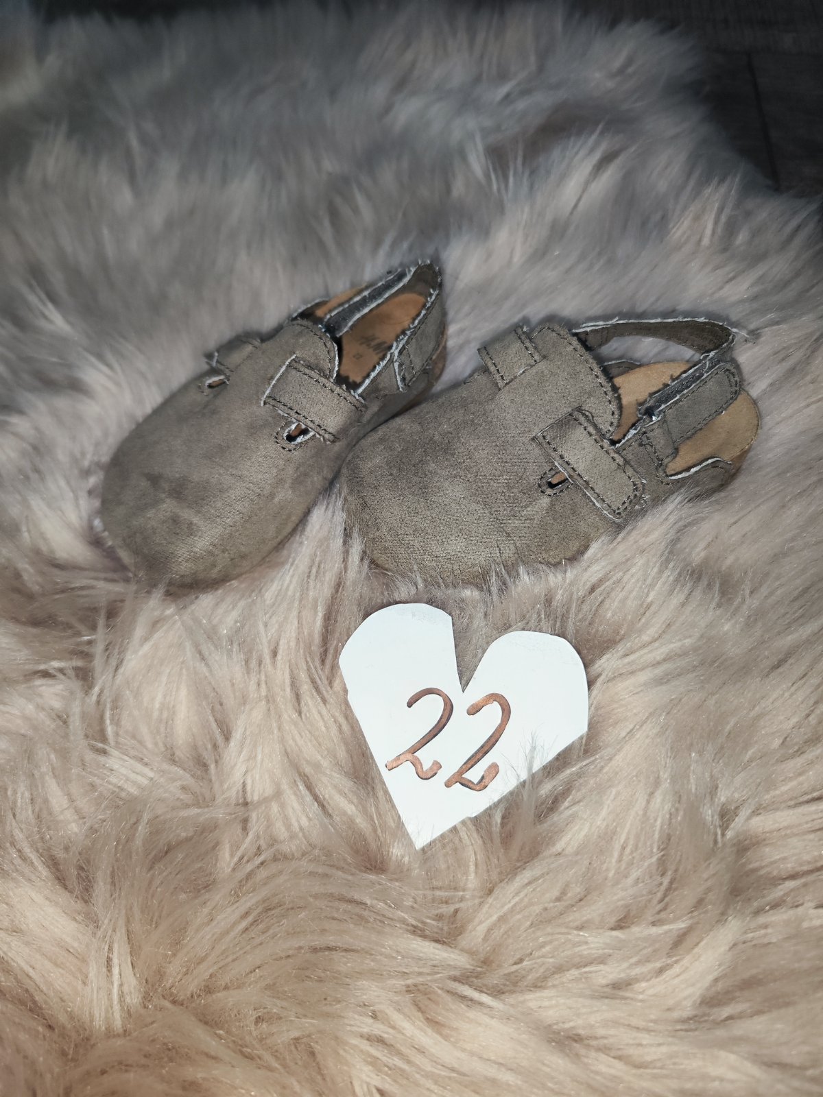 Nosené. Našuchovačky H&M , Ešte poslúžia veľkosť 22 ale ponosite aj ako 21 keď dotiahnete suchý zips . Farba niečo medzi šedou a béžovou.