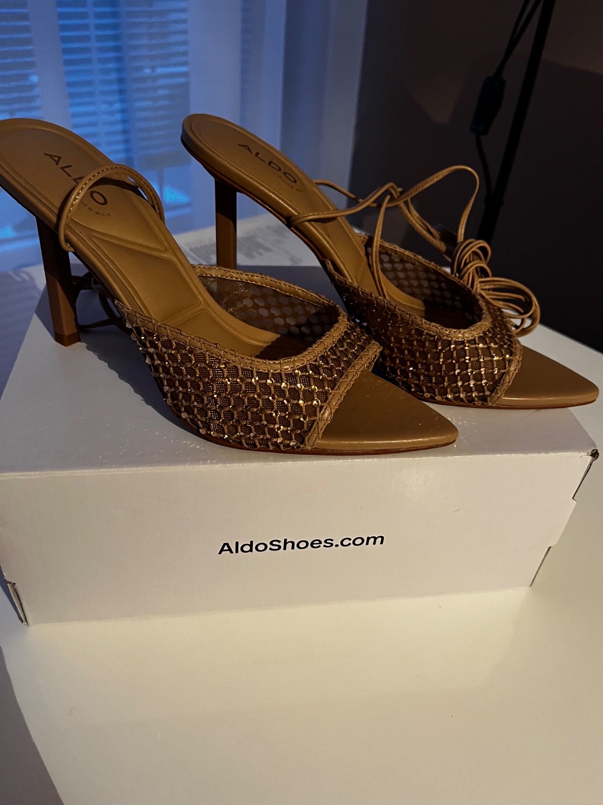 Ponúkam na predaj luxusné sandálky značky ALDO raz obuté v ateliéri na fotenie hodinu, bez známok nosenia, šnurky sú dlhé a dajú sa uviazať na rôzne spôsoby, trblietky na prednej časti, farba telová. Veľkosť 40 ale sedia na 39. PC bola 110 eur.