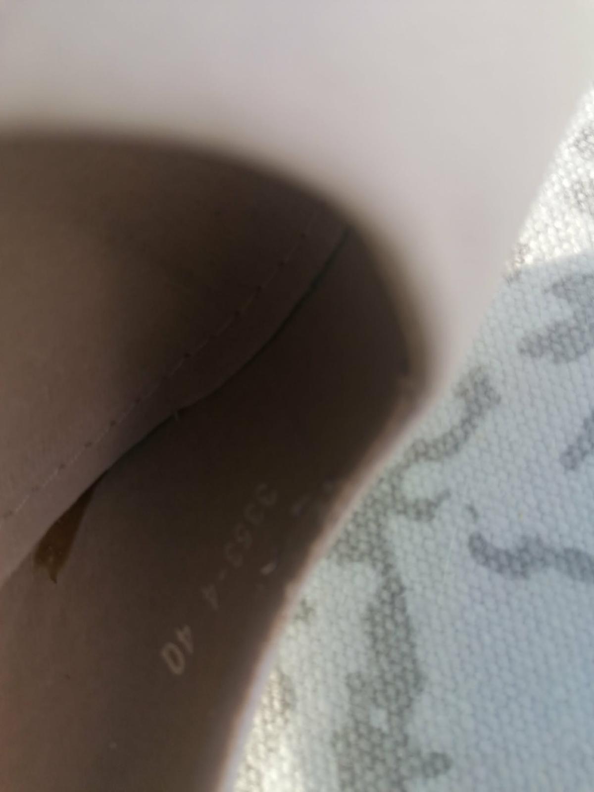 Opätok (10cm) kus zošúchaný vzadu, pod vložkou trocha vidno lepidlo inak zvonka super stav