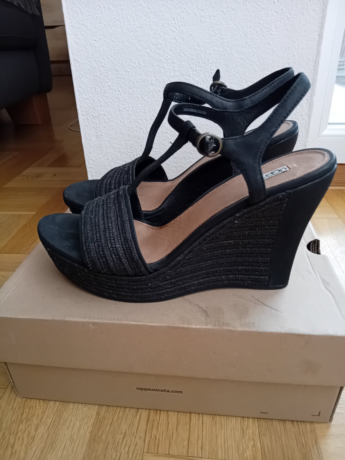 Predám málo nosené sandále Ugg na vysokom plnom opätku. Veľkosť 41, bez známok nosenia, bez opotrebovania.