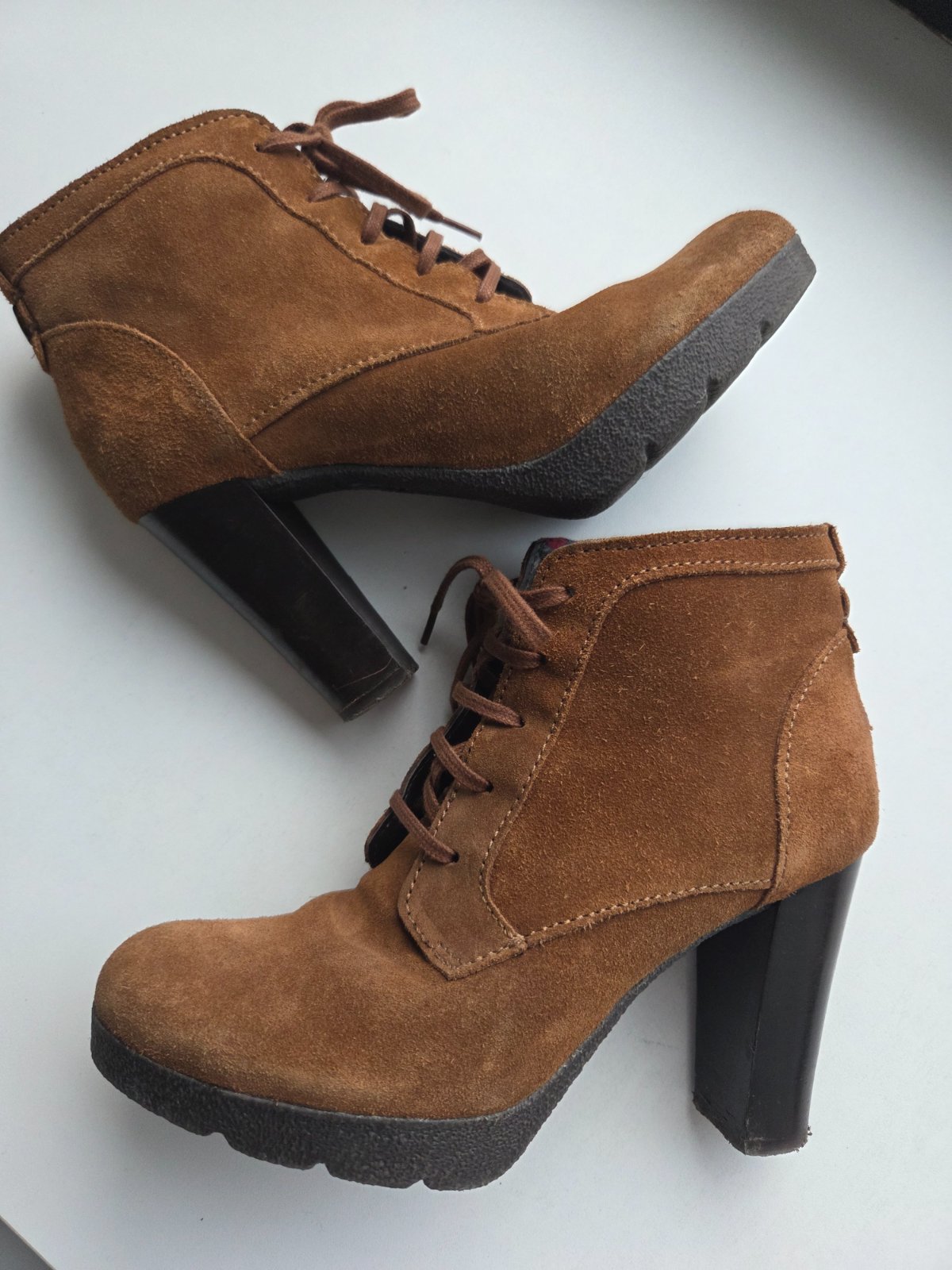 Krásny stav. Brusena koža. Jediná chybička sú suchnute na opätku na spodku. Nevidno pri noseni. Pohodlne vdaka.platforme vpredu, necítiť výšku