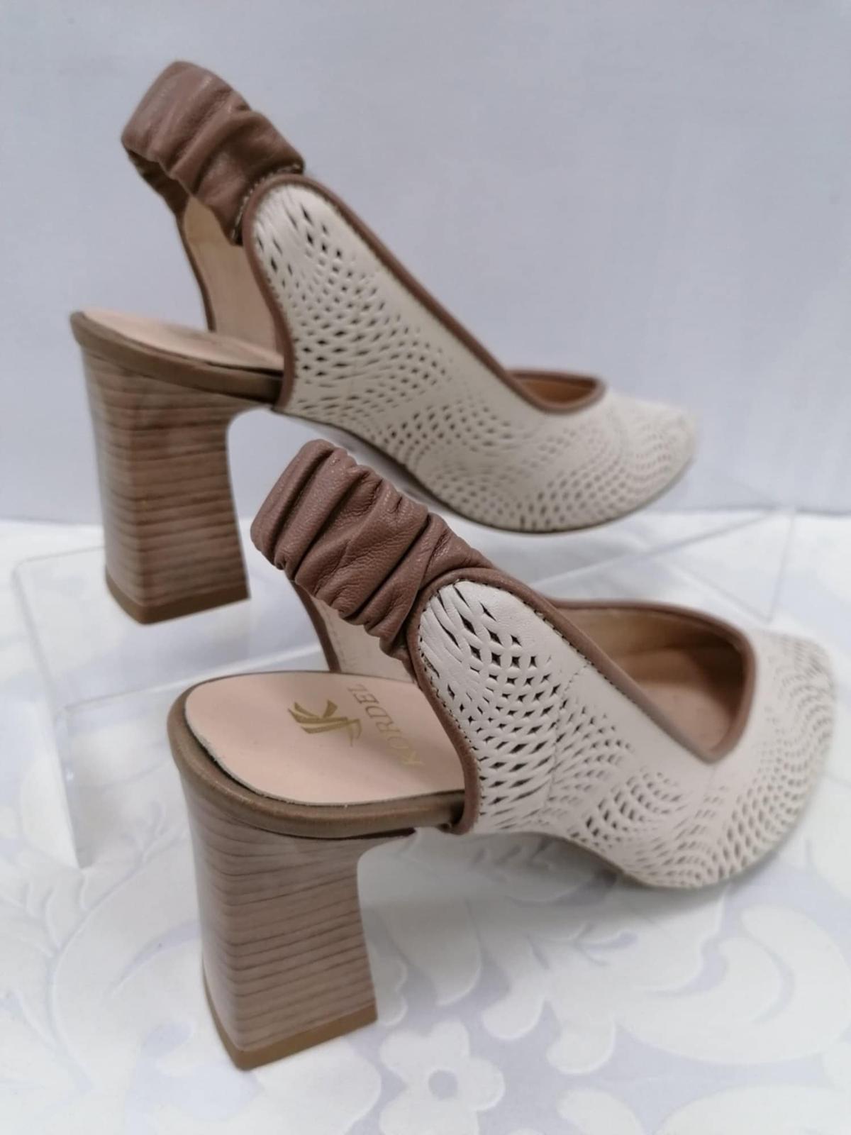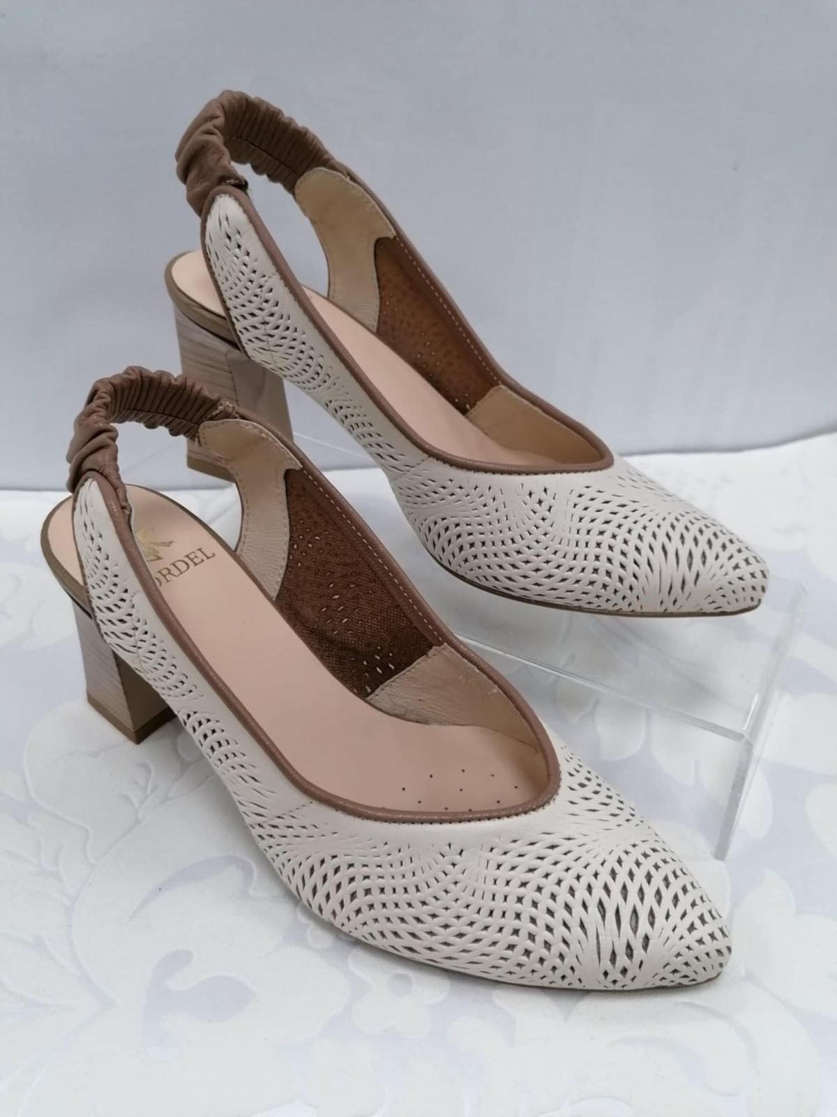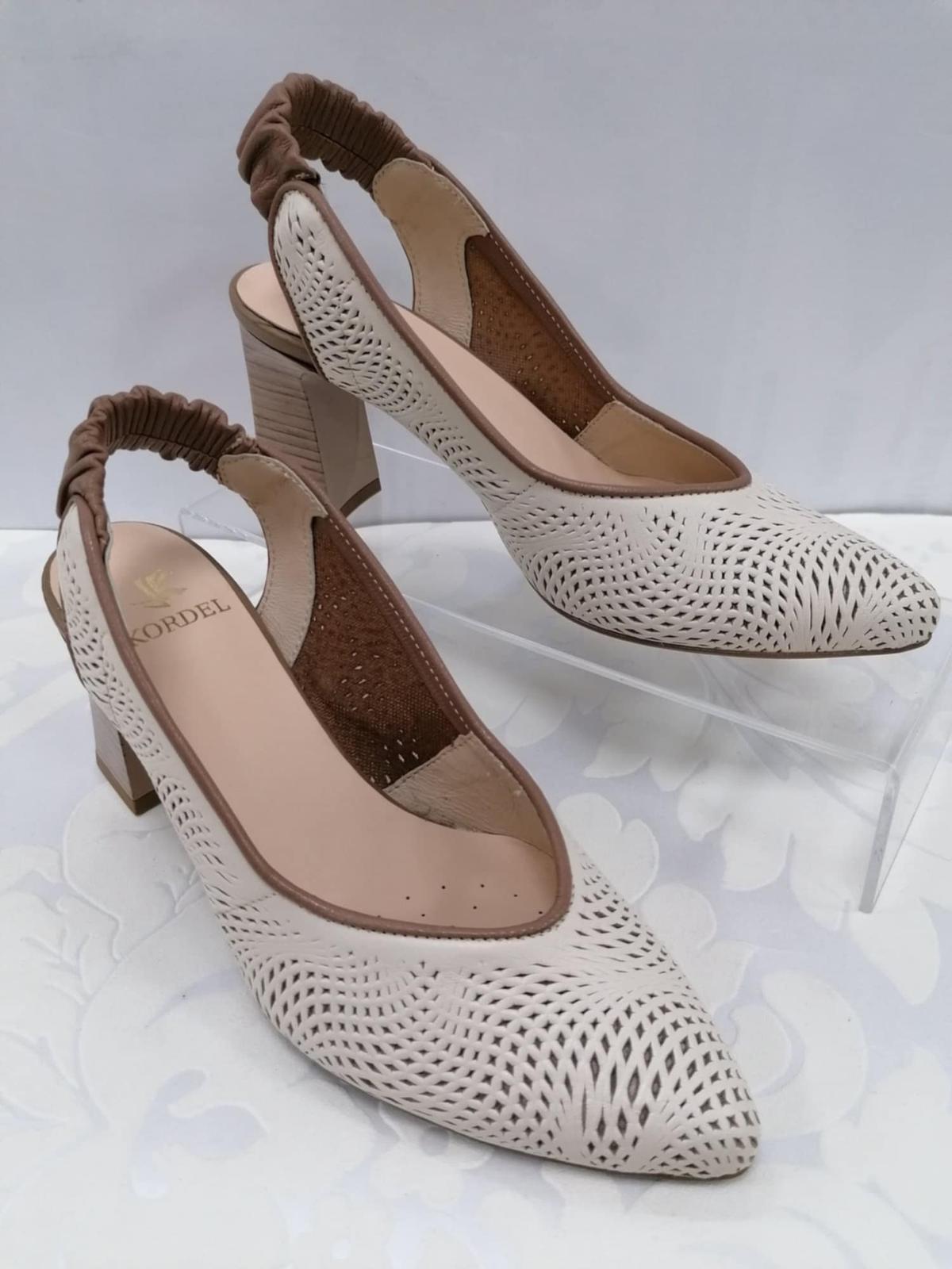 Doprajte si kvalitnú a pohodlnú obuv od značky Kordel. Pohodlné lodičky so zaujímavým podpätkom, ktorý pripomína drevo, oživia každý váš outfit a preto by nemali chýbať vo vašom botníku. Sú vyrobené z kože, ktorá svojimi vlastnosťami zabezpečí prispôsobenie k akémukoľvek chodidlu. Lodičky sú po zvršku perforované, čo umožňuje maximálnu priedušnosť chodidlám. Vyšší a hrubý podpätok zaručuje pohodlie a stabilitu pri chôdzi. Zo zadnej strany sa nachádza elastický remienok pre jednoduché obúvanie a vyzúvanie. Tento kúsok je ako stvorený na každodenné nosenie alebo vás môže sprevádzať na spoločenských akciách.