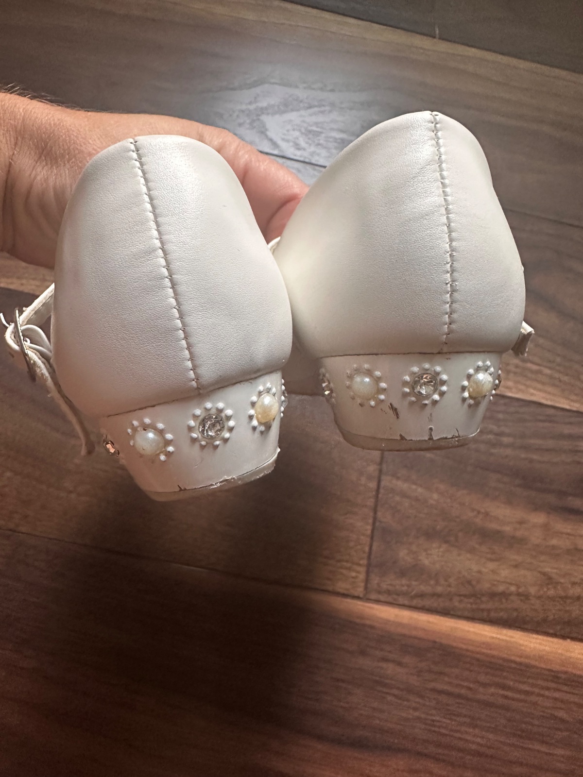 SKLADOM Sviatočné textilné topánky Next, dovoz UK, farba snehobiela, vzadu na päte je zlatý motýľ, dostupné veľkosti: UK7=EU24 (2 páry), UK9=EU26,5 (3 páry), UK11=EU29. Kód 712374. Vnútorná dĺžka...