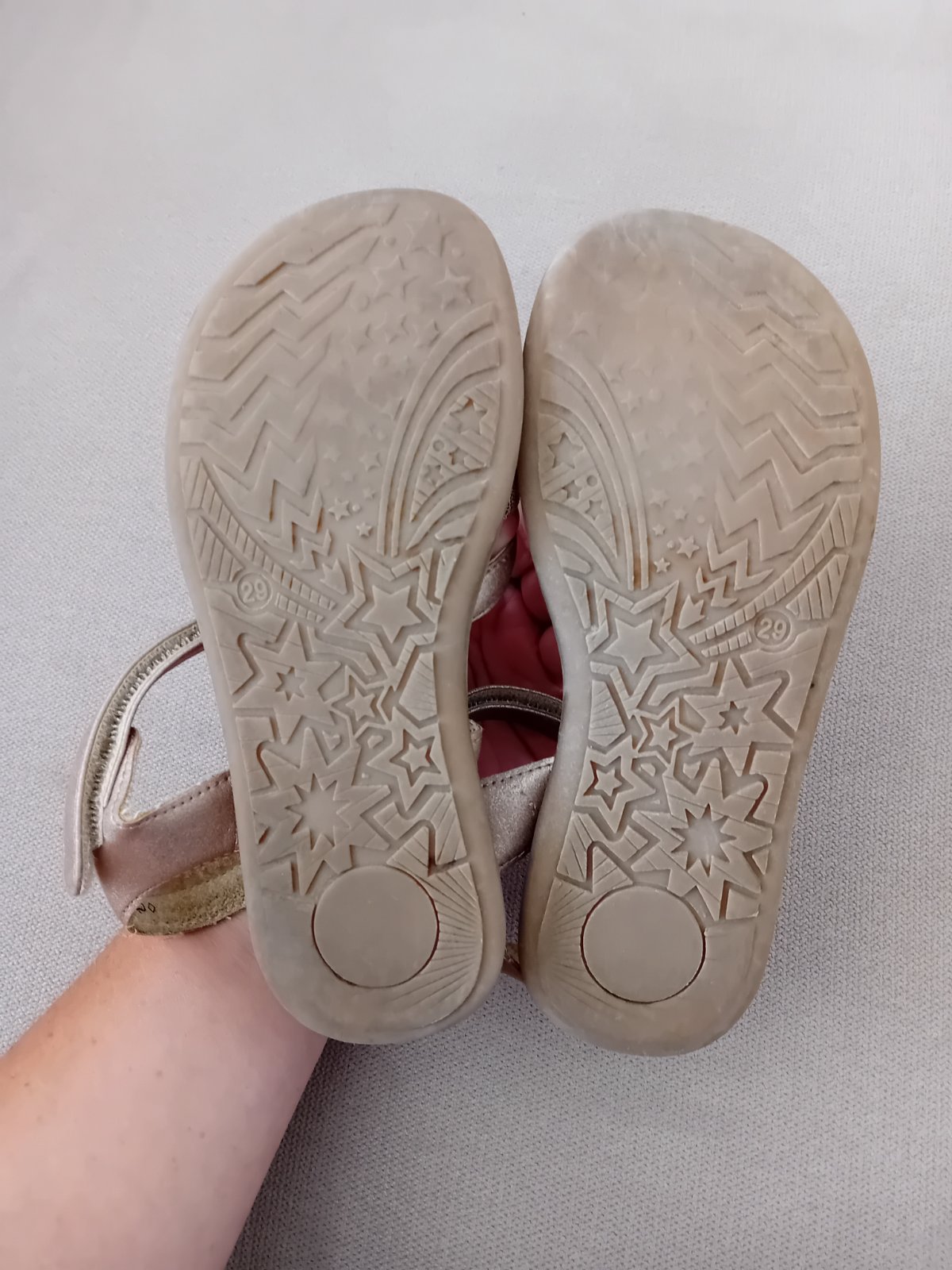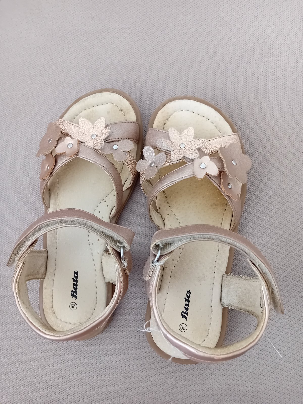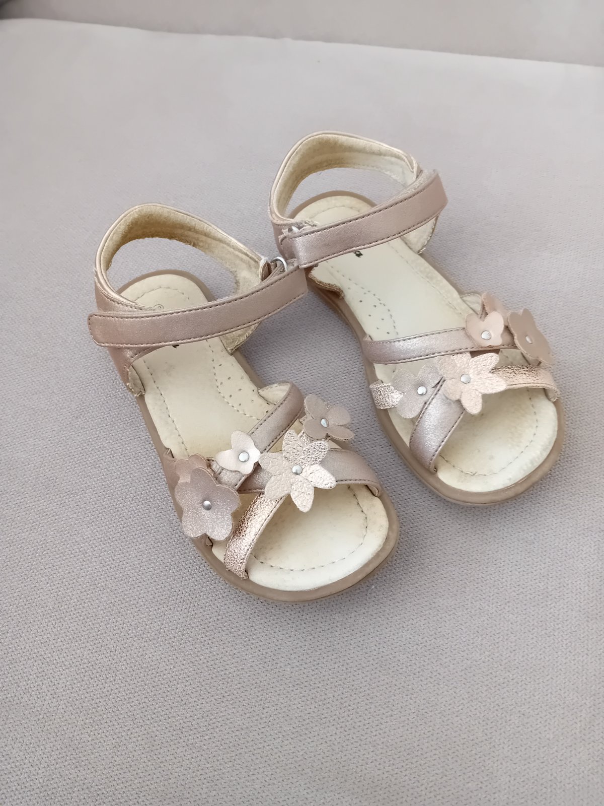Nosené sandálky, vhodné aj ku šatám, farba hnedá s perleťovým odrazom. Vidno nosenie, ale zničené nie sú.