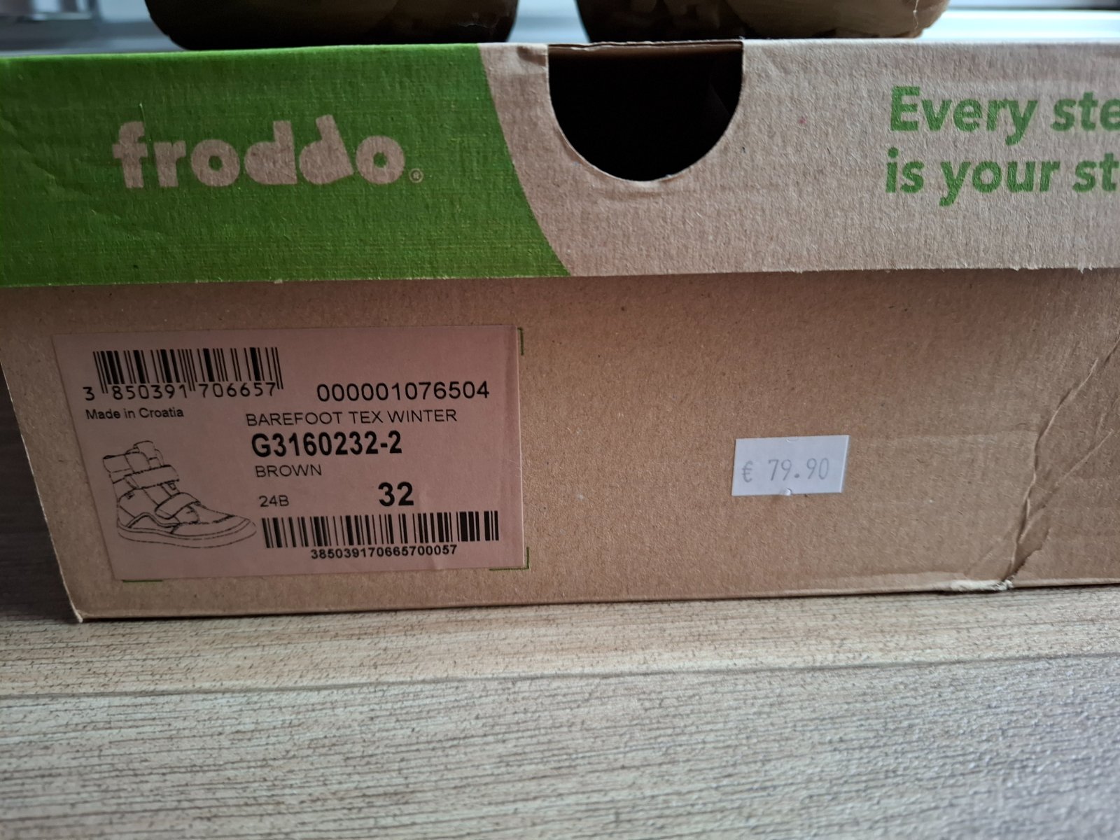 Unisex zimne topanky Froddo tex winter 2024, vel. 32, kupovane v 11/2025, cize ste v zaruke. Su zateplene ovcou vlnou, maju membranu, rozmery v tabulke od barefoothedvika, kde boli zakupene.