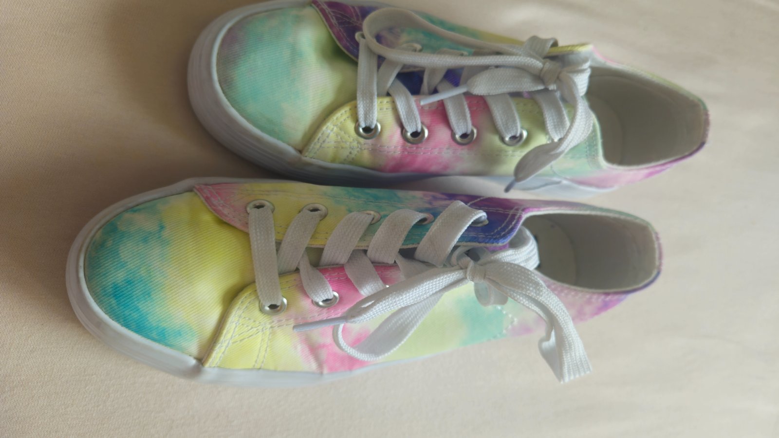 Raz obuté tenisky z daichmanu..Duhove zafarbenie/potlač.povidna cena 17e