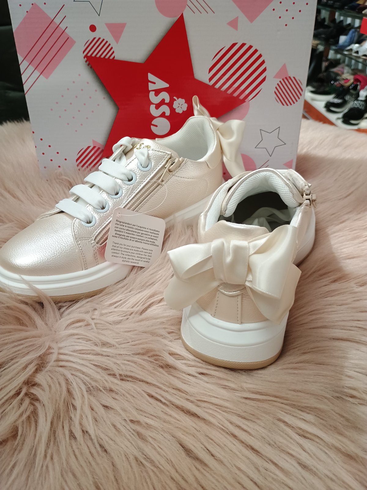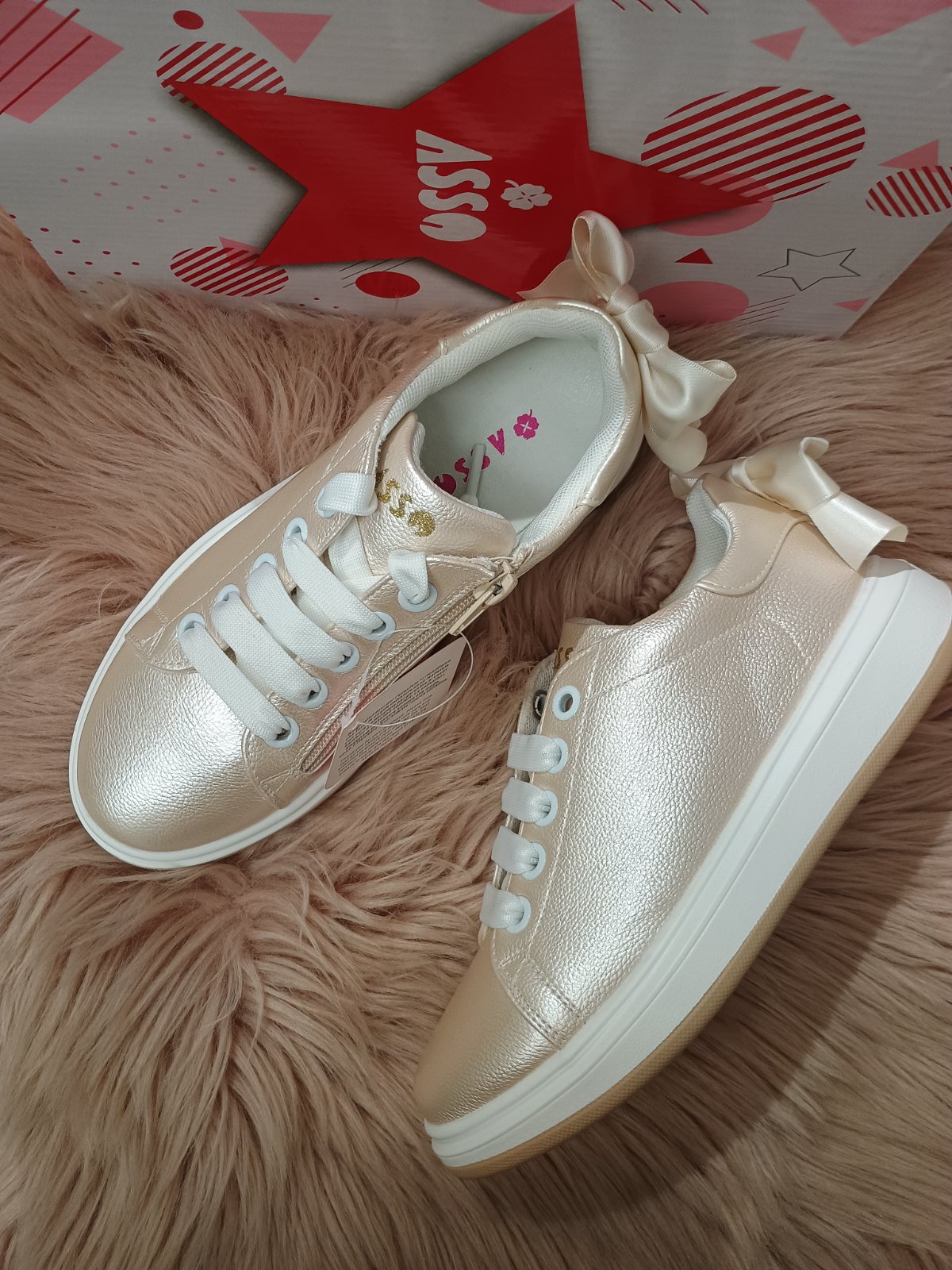Zlaté tenisky pre dievčatá v zaujímavom a jednoduchom dizajne od značky ASSO, ktoré vaše ratolesti ocenia hlavne kvôli pohodlnosti, všestrannosti a modernému spracovaniu. Tenisky majú zvršok z eko kože, so zlatým odleskom. Tenisky majú klasické šnúrovanie, zvýšenú podrážku s dobrou priľnavosťou k povrchom rôznych druhov. Ideálne na každodenné nosenie.