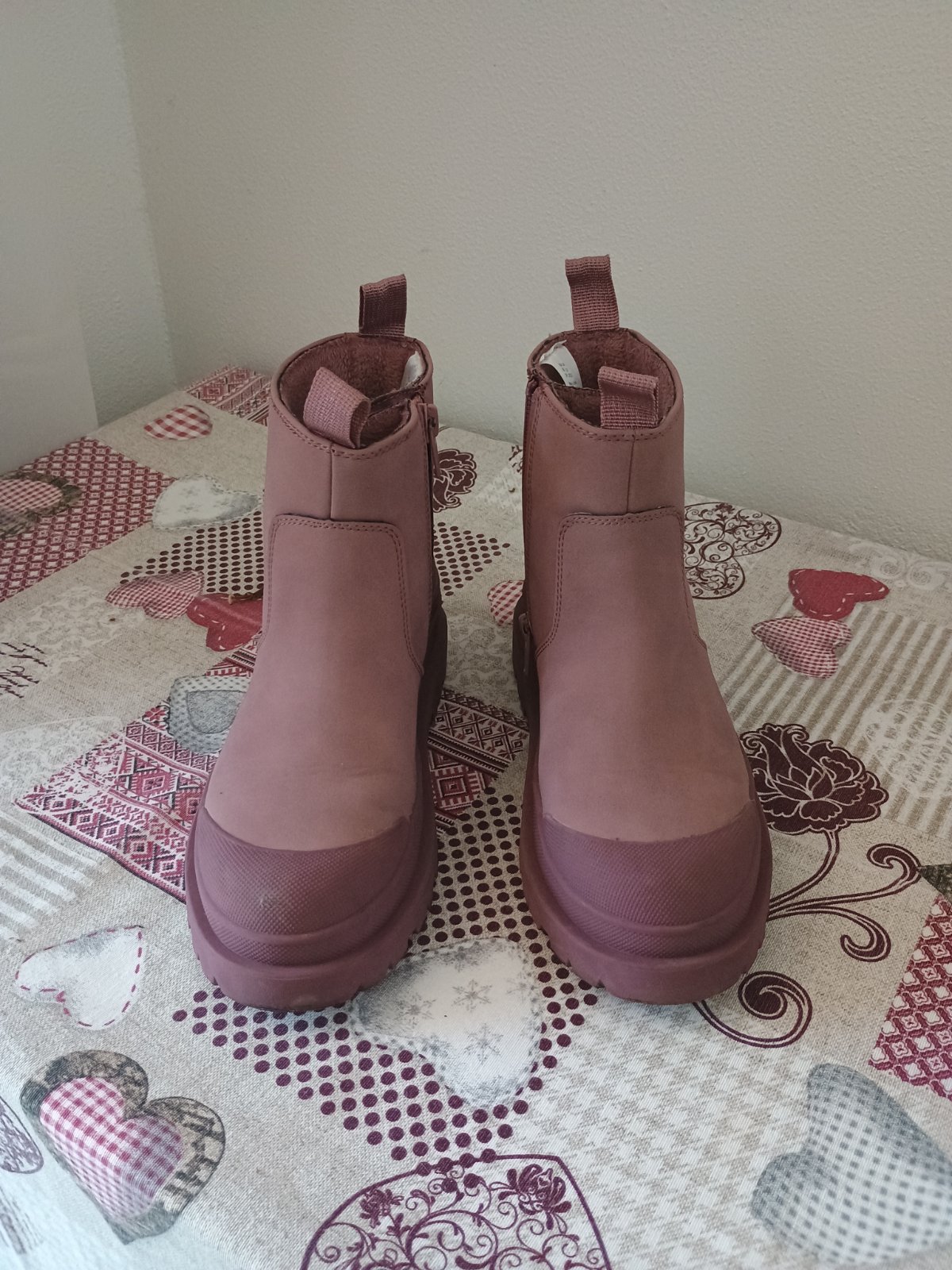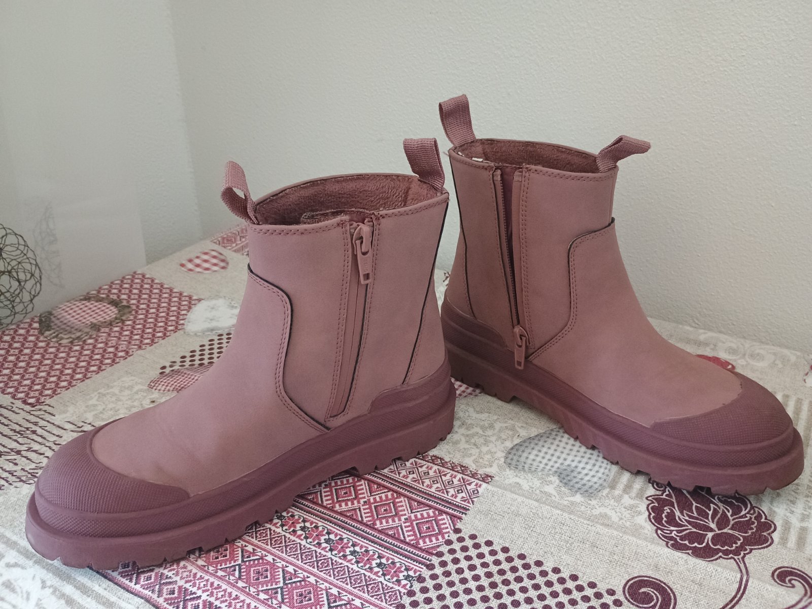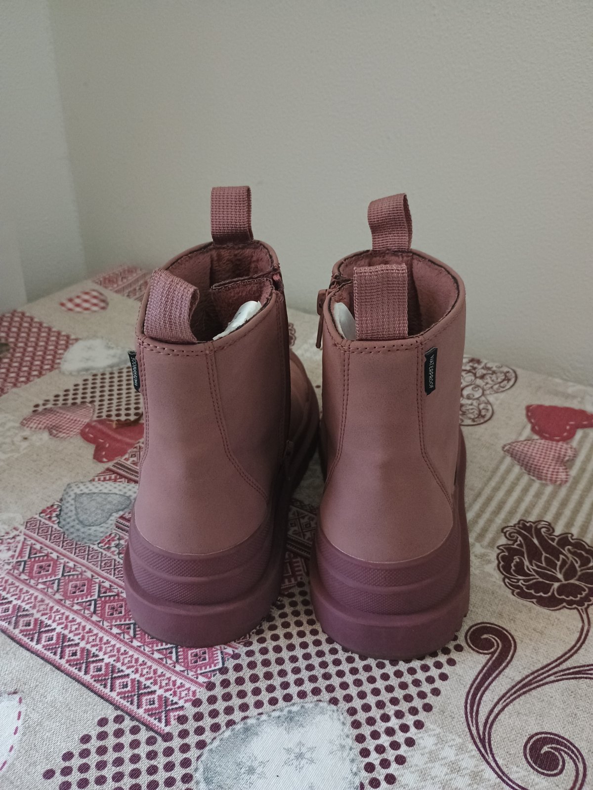 Nepremokavá obuv na prechodné obdobie, mierne zateplené. Naboku na zips, s gumenou špičkou. Párkrát obuté,top stav. Vnútorná dĺžka 21cm