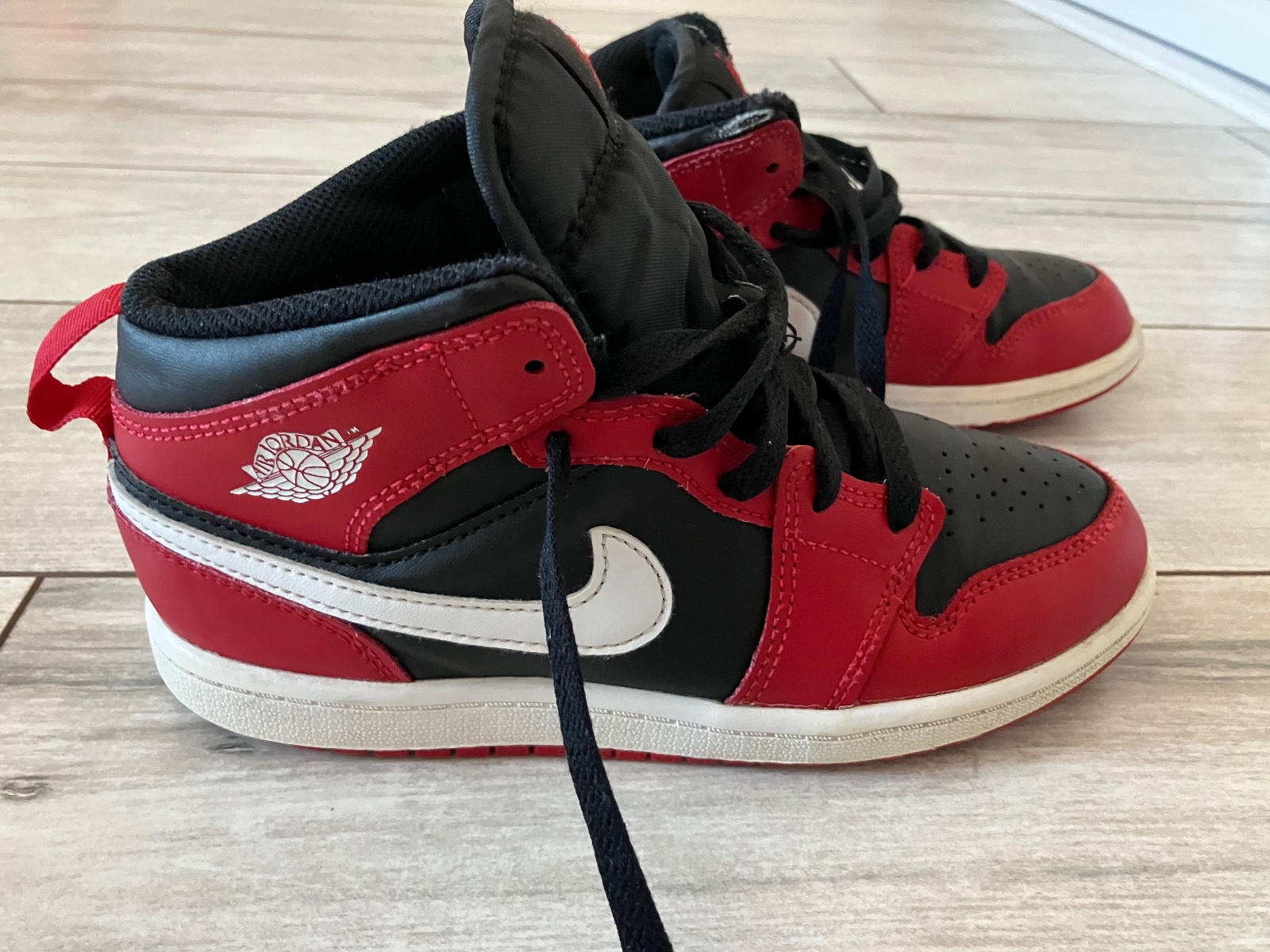 Predam botasky Air jordan 1mid neboli nosene iba odskusane velkost 34 dlzka 22cm podla ma unisex vhodne aj pre dievča aj chlapca akurat zo spodu na krabici sa syn hral a ofstrihol foto prilozene in...
