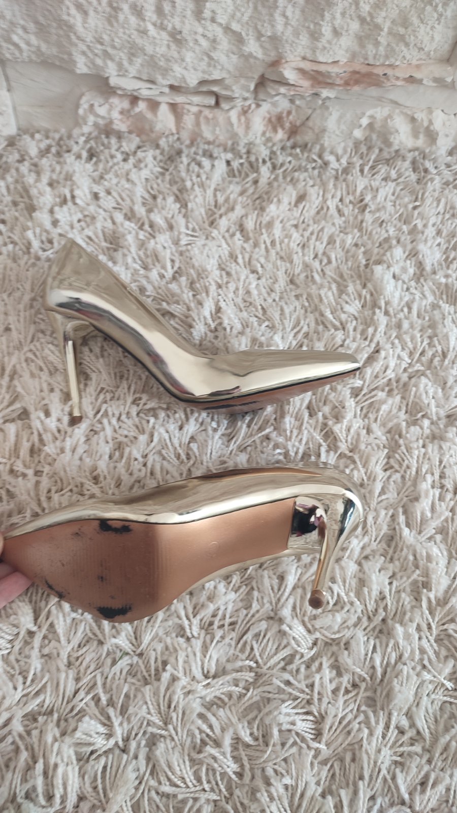 Ponúkam zlaté lodičky so špicatou špičkou.