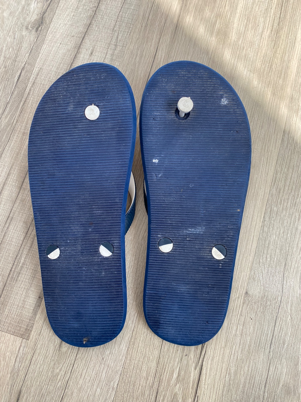 Pánske šľapky, žabky. Veľkosť písaná 36/37 no dĺžka je 26 cm čo vychádza na veľkosť 41. Nosené málo, no vidno zosúchanú podrážku. Viď foto. Cena 3€ + poštovné