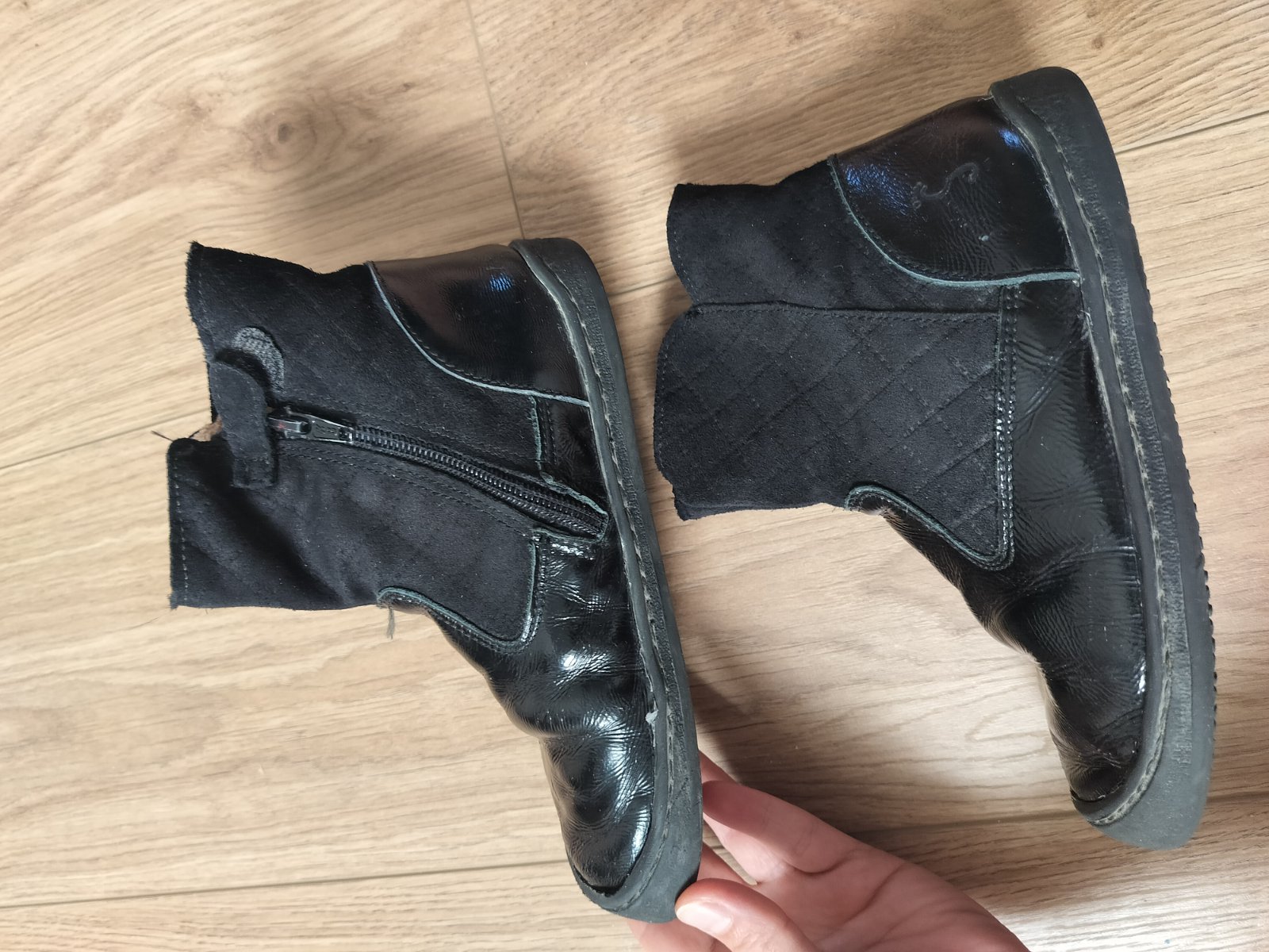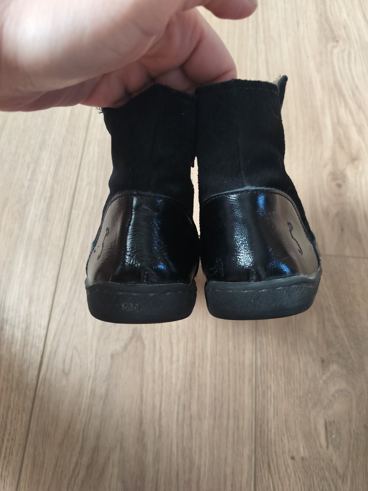 Krásne členkové čižmičky. Sú mierne zateplené aj na vložke. Na prechodné obdobie alebo teplú zimu. Dcéra nosila cca pol zimy. Nosenie už trochu vidieť,pokrčená koža a miestami sa odlepuje podrážka. Inak funkčné bez problemov. Značka Nens.