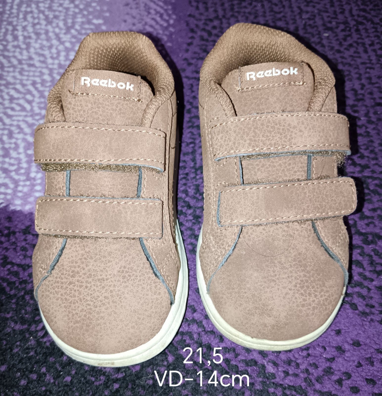 Reebok detská obuv, syntetická koža, veľkosť: 21.5 ale sú väčšie strihovo celá nameraná stielka má 14 cm, miesto pre nohu 13-13.5 cm.