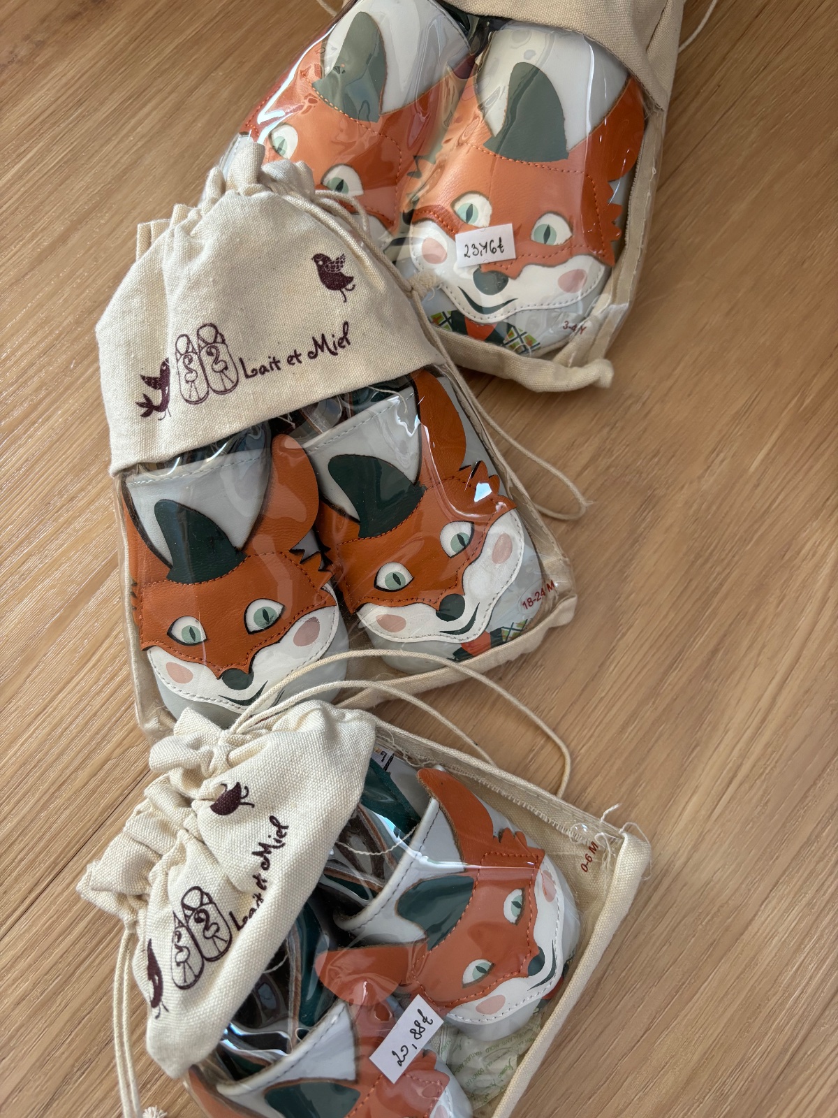 Kozene capacky Lait et Mie s motivom zirafy. Vhodne na normalne aj sirsie nohy, ale skor nizsi priehlavok,