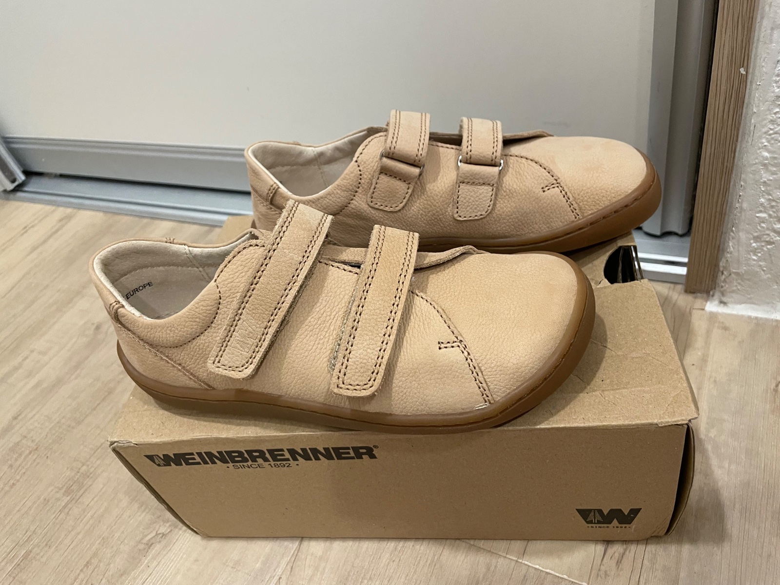 Nové, iba vyskúšané kožené topánky Weinbrenner veľkosť 34 kupované u Baťu. Kupovala som dopredu ale syn ich nikdy nenosil. Vhodne sú pre užšie nohy a nižšie priehlavky. Nameraná vnútorná dĺžka 22,3 cm