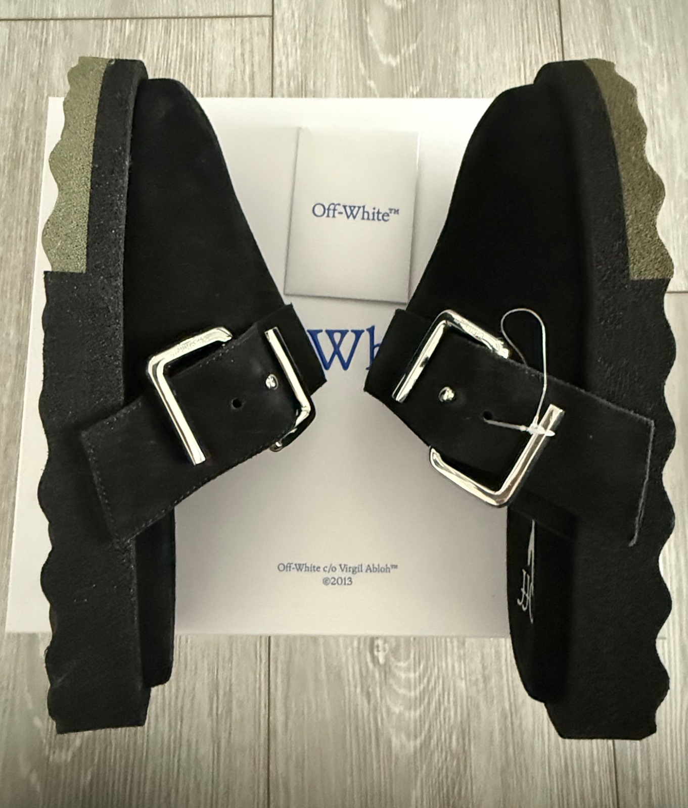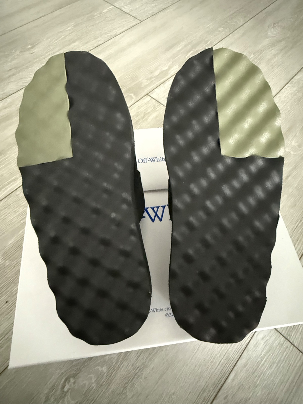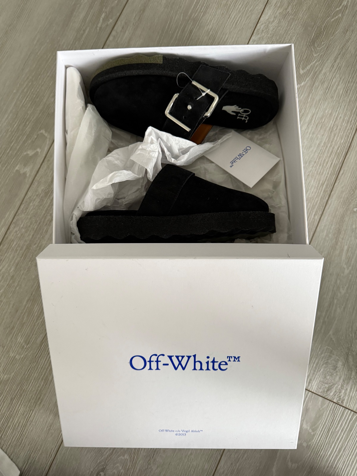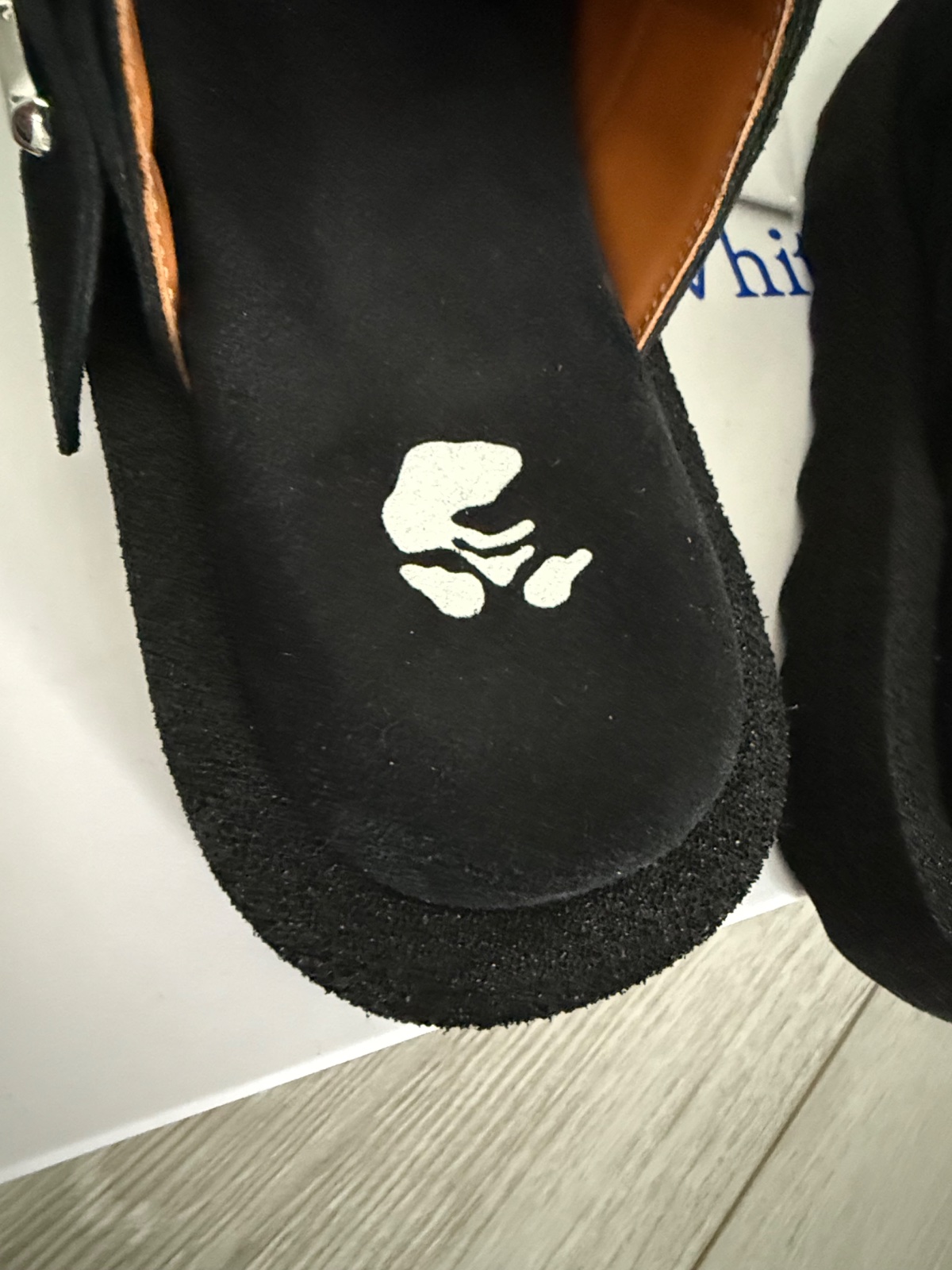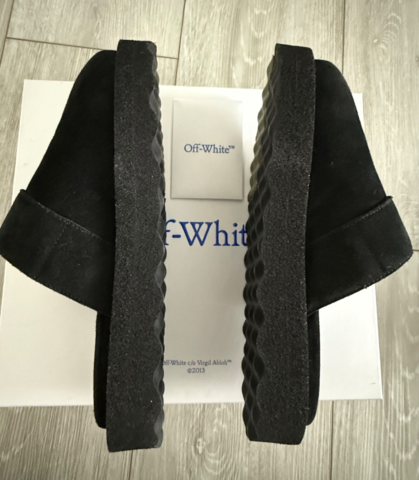 Krasne a velmi pohodlné šľapky s plnou špicou Sponge Off-White. Materiál čiena brúsená koža. Hore ozdobná funkčná pracka s logom značky. Veľkosť 39. Nové s krabicou.