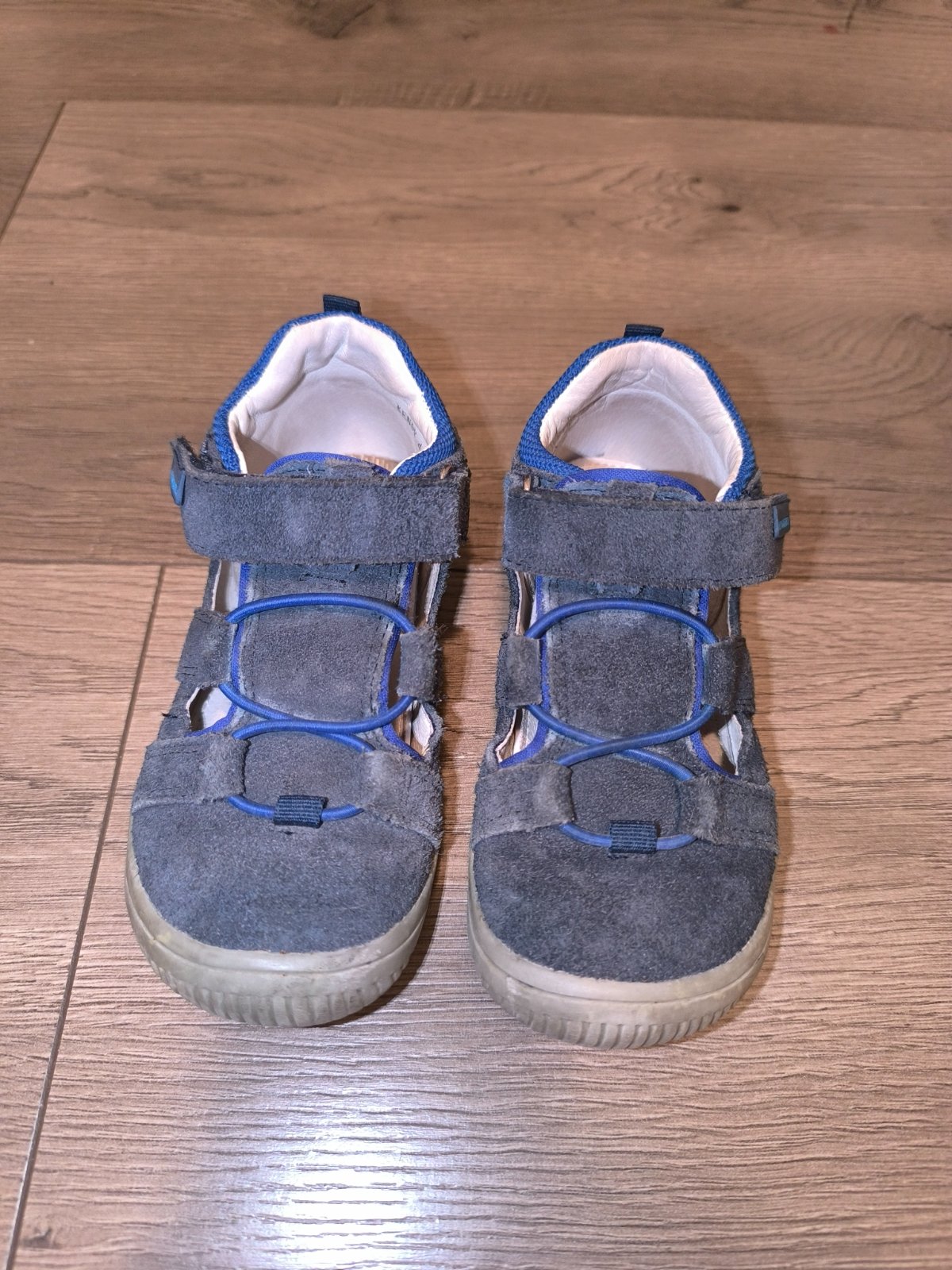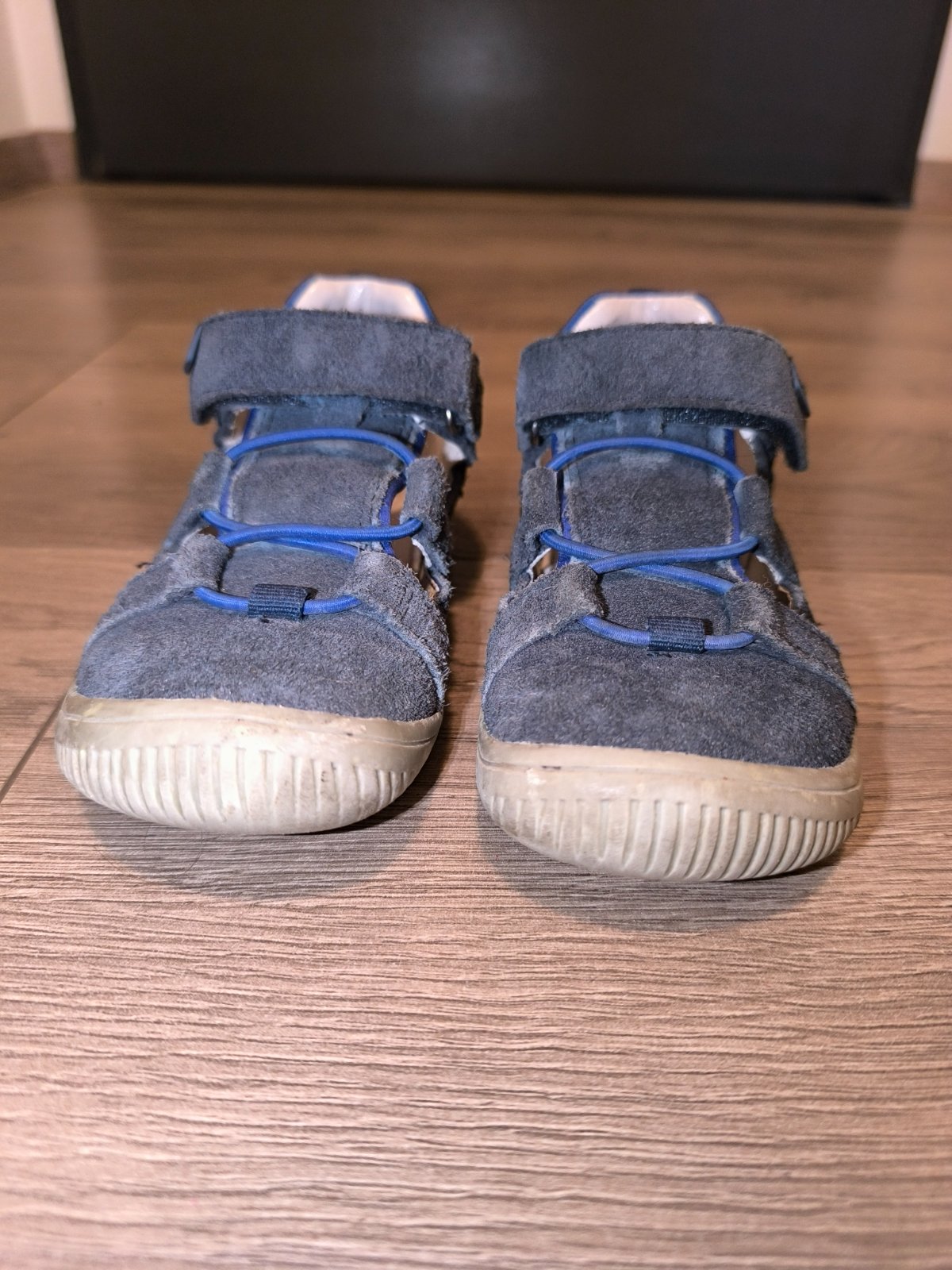 Nosené jedno leto na striedačku s inými. Sú barefoot a majú uzavretú špičku, zapínanie na suchý zips. Nosené vždy s ponožkami. Nemajú žiadne poškodenie, bežné známky nosenia. Špičky neokopané. Skut...
