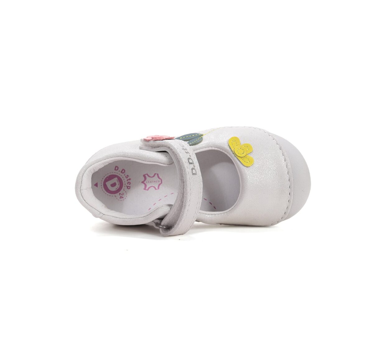 Detské kožené topánky D.D.Step H015-61614B sú ideálnou voľbou pre prvé kroky aj každodenné nosenie. Jemné spracovanie, mäkké materiály a flexibilná podrážka zabezpečujú maximálne pohodlie a prirodzený pohyb detskej nohy. Roztomilý kvetinový dizajn dodáva topánkam nežný a hravý vzhľad.