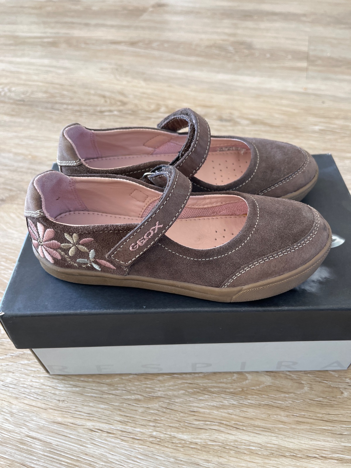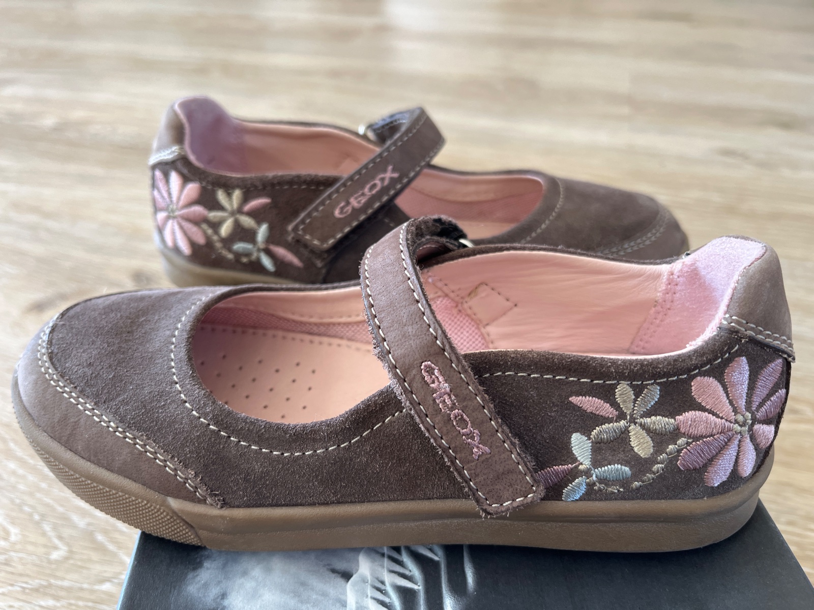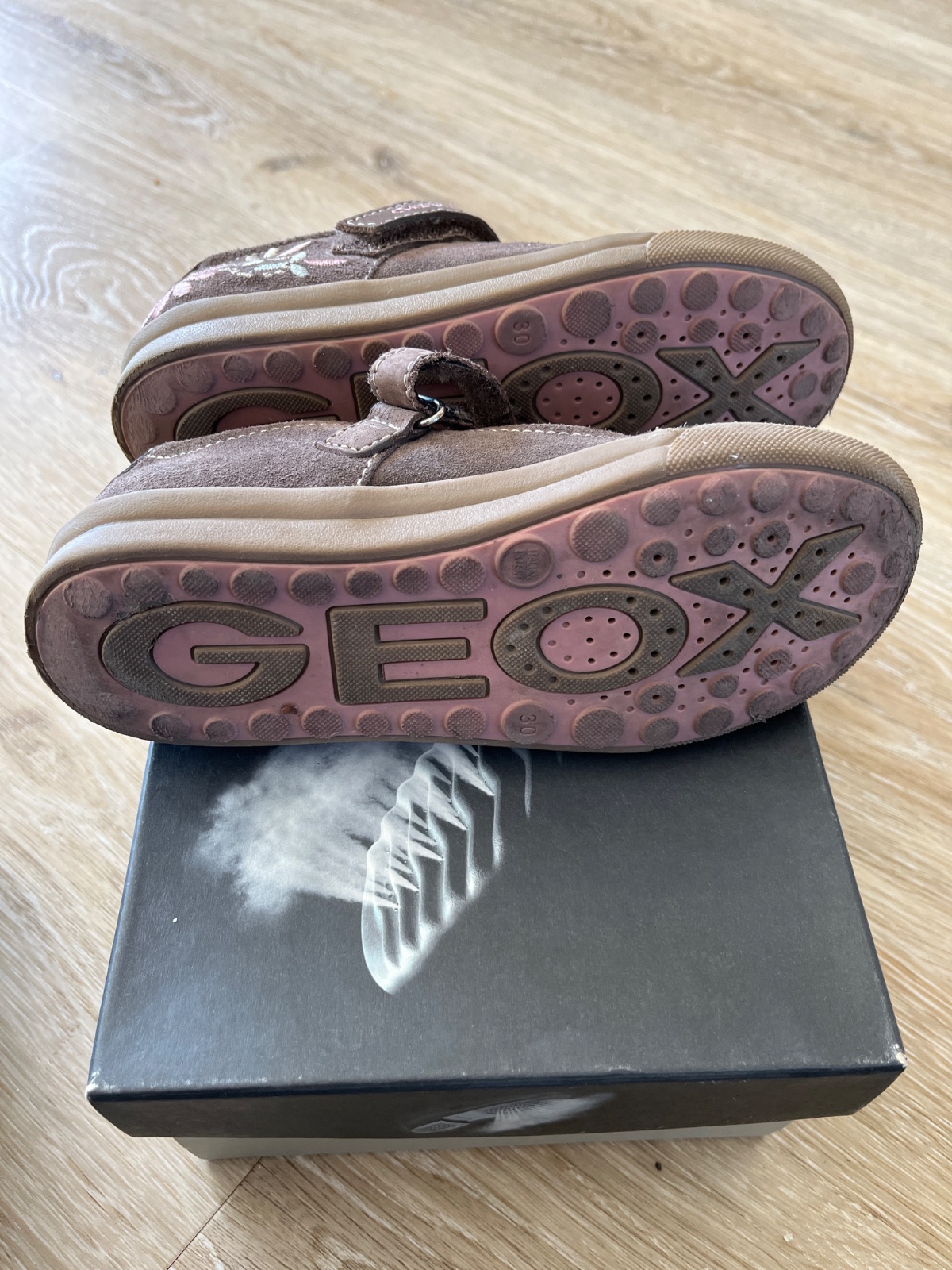 Krásne dievčenské poltopánky značky Geox. Obuté párkrát, rýchlo boli malé - vlastne som ich kupovala, keď už boli skoro malé :-) uvádzaná veľkosť 30, sú skôr 29, o číslo menšie ako všetky geoxky.