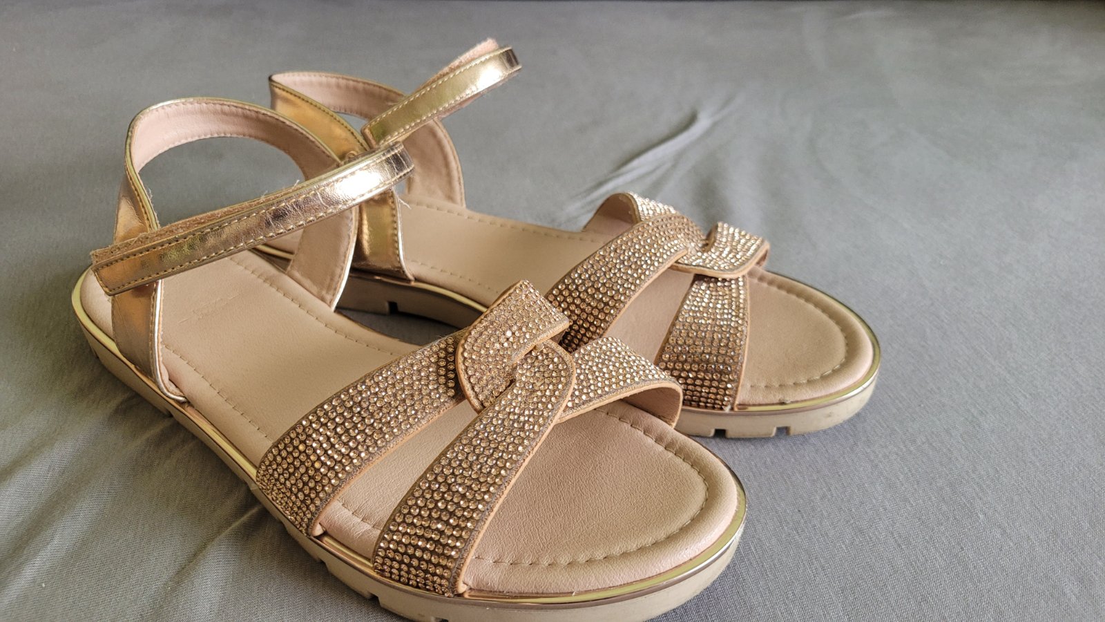 Predám sandalky Baťa, veľ.38. Nosené jedno leto. Sandále s dvojitým crisscrosovým remienkom s kamienkami, remienok na jednoduché nastavenie. Pružná podrážka.