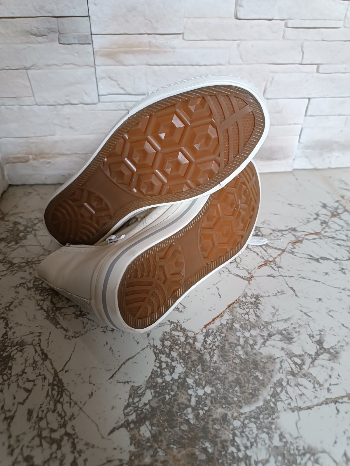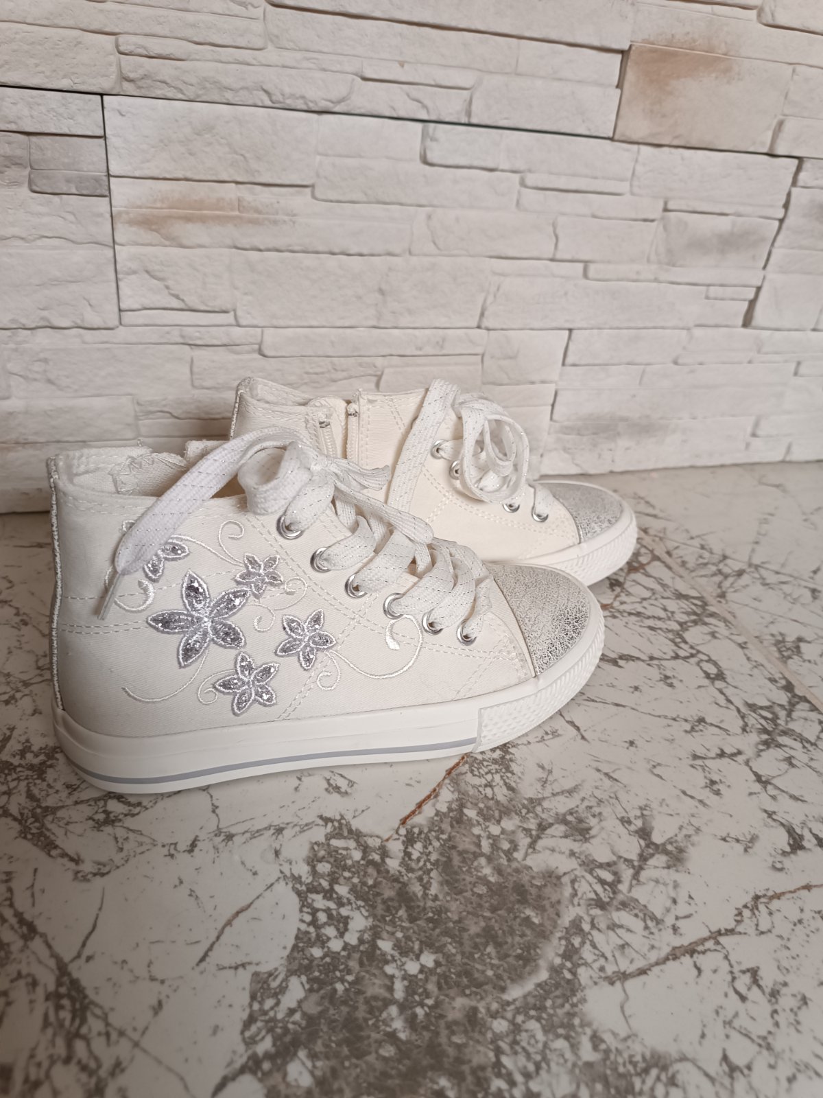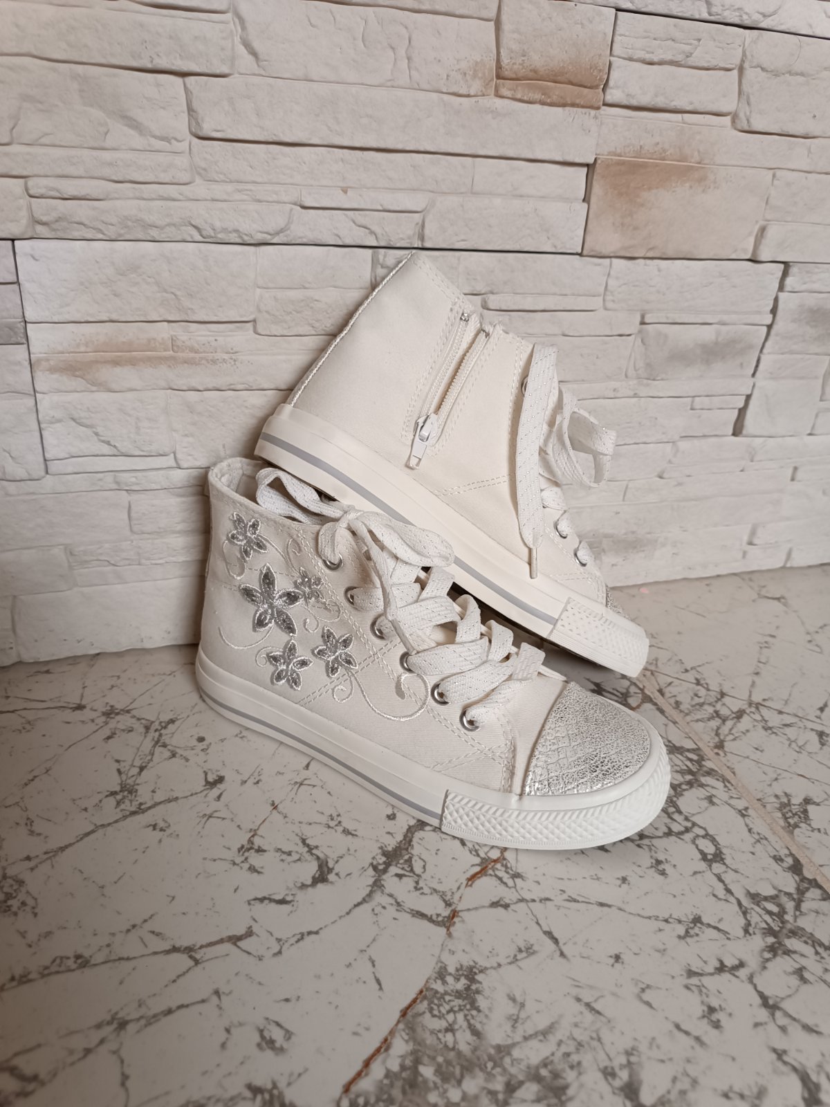 Kúpené kvôli vystúpeniu, použitie jediný krát aj to vo vnútri na pódiu, dcéra ich viac nechcela nosiť (vadilo jej členková výška). Sú ako nové! Bez poškodení. nútorná dĺžka 20 cm preto udávam veľkosť 32 ale na topánkach je označená ako 31.