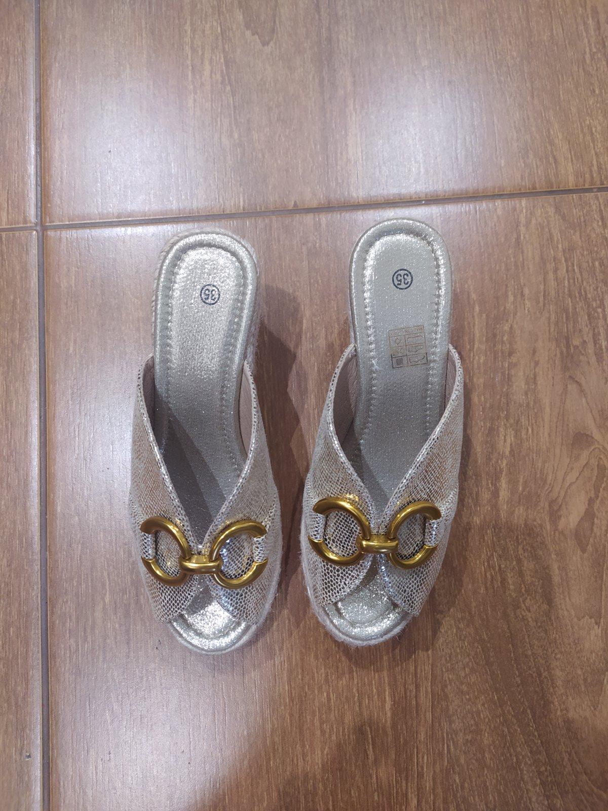 Krasne nasuchovacky/sandalky na podpatku velmi pohodlne krasne, vhodne na uzsiu nozku velkost 35 aj sedia. Top stav vzate len 1x ako nove. Pc vyssia.