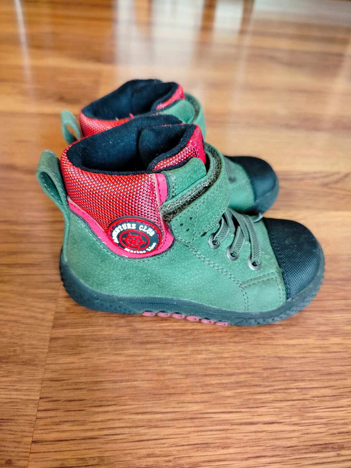 Predám prechodné topánky, veľkosť 23, vo výbornom stave, po jednom dieťati. Kupované v Baťa. Sú ohybné, ľahučké, podšité. Na päte sú trochu ošúchané z odrážadla - fotka.