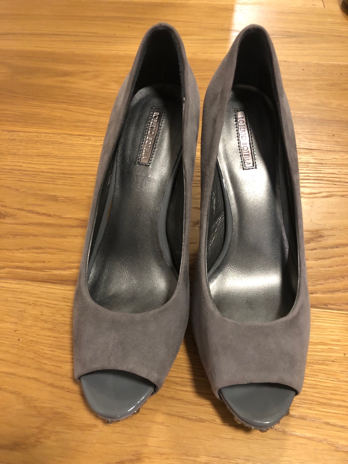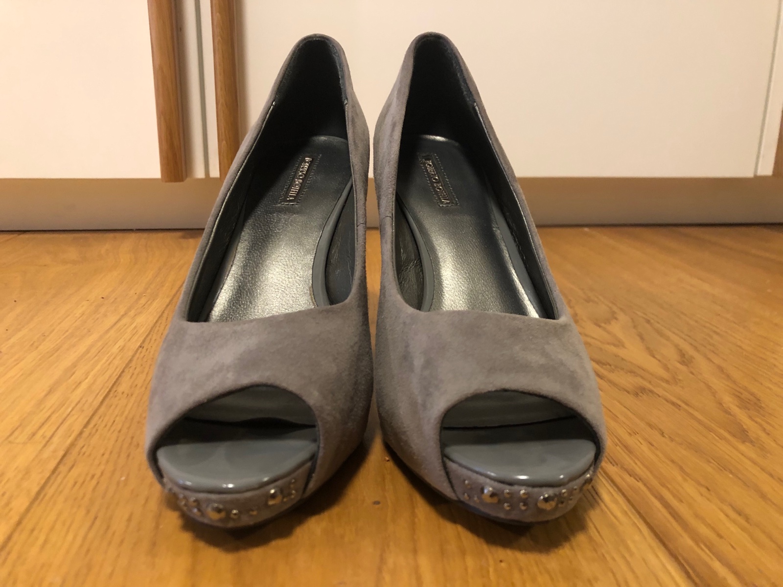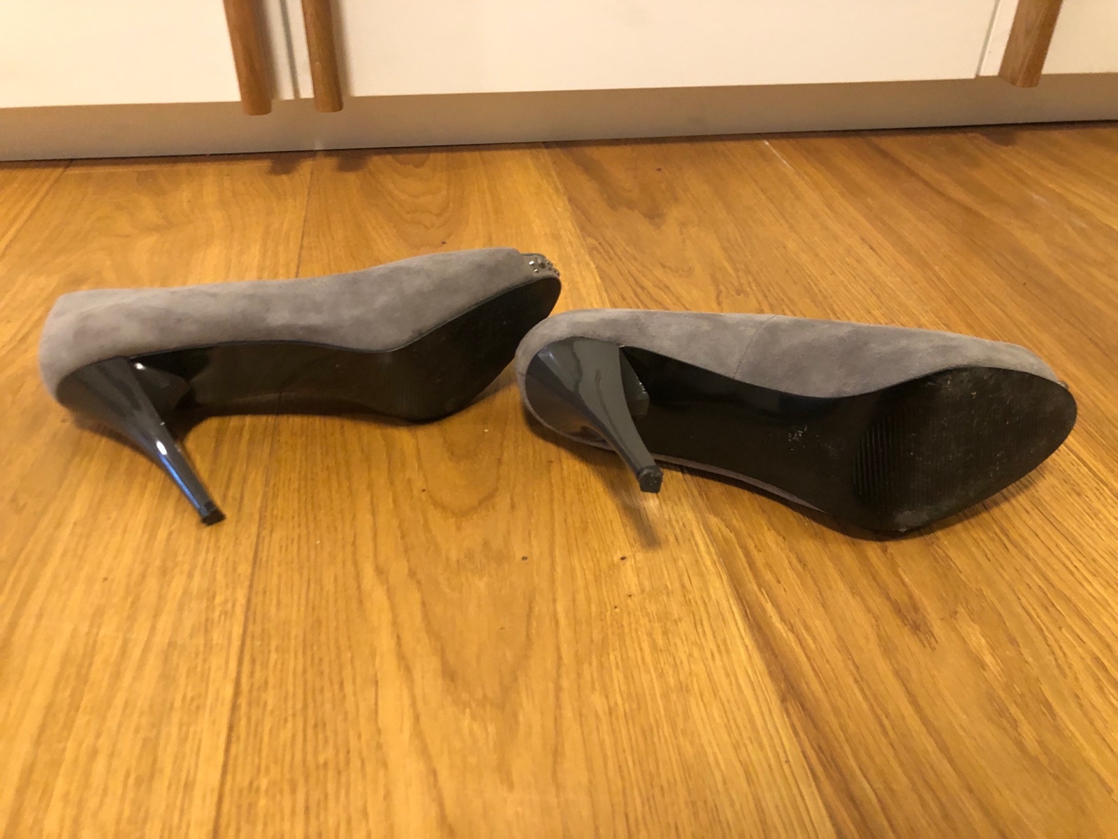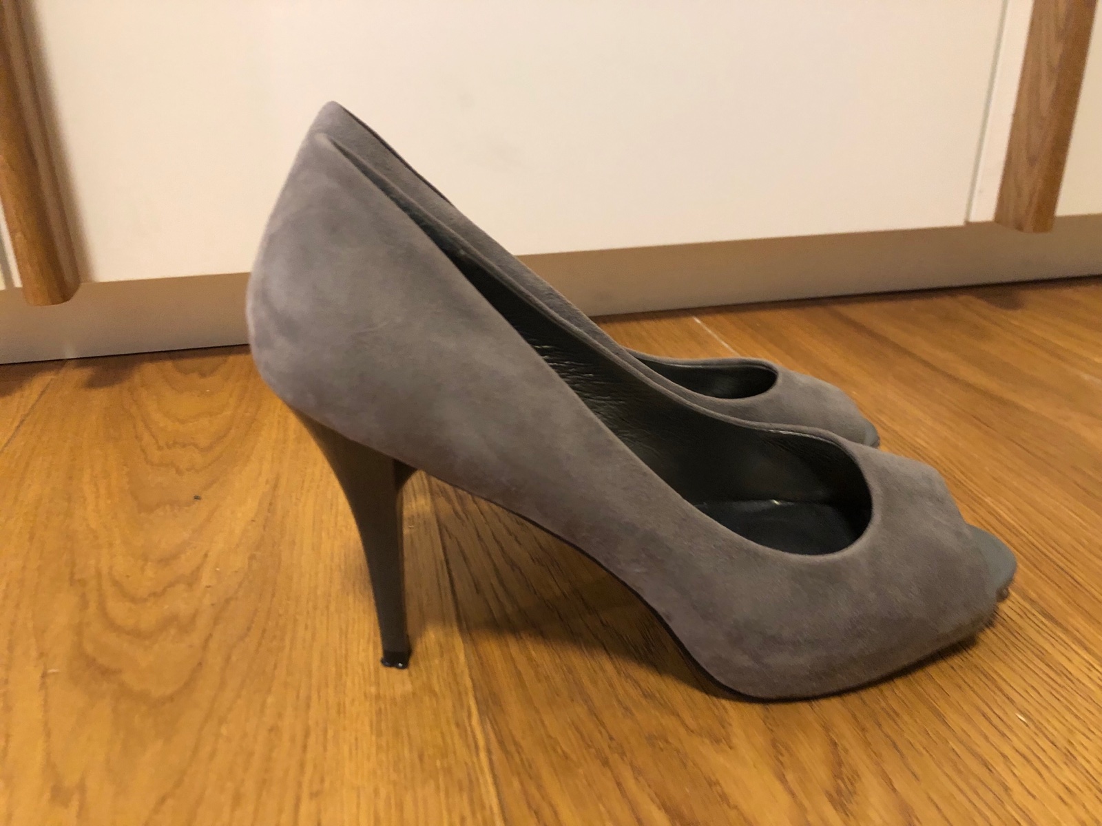 Obuté asi 1x, na jednej topánke chýba celá pracka. Farba je taká krémovo-sivá (ťažko ju zachytiť na foto) PC cena cca 45€ posuniem za 30€.