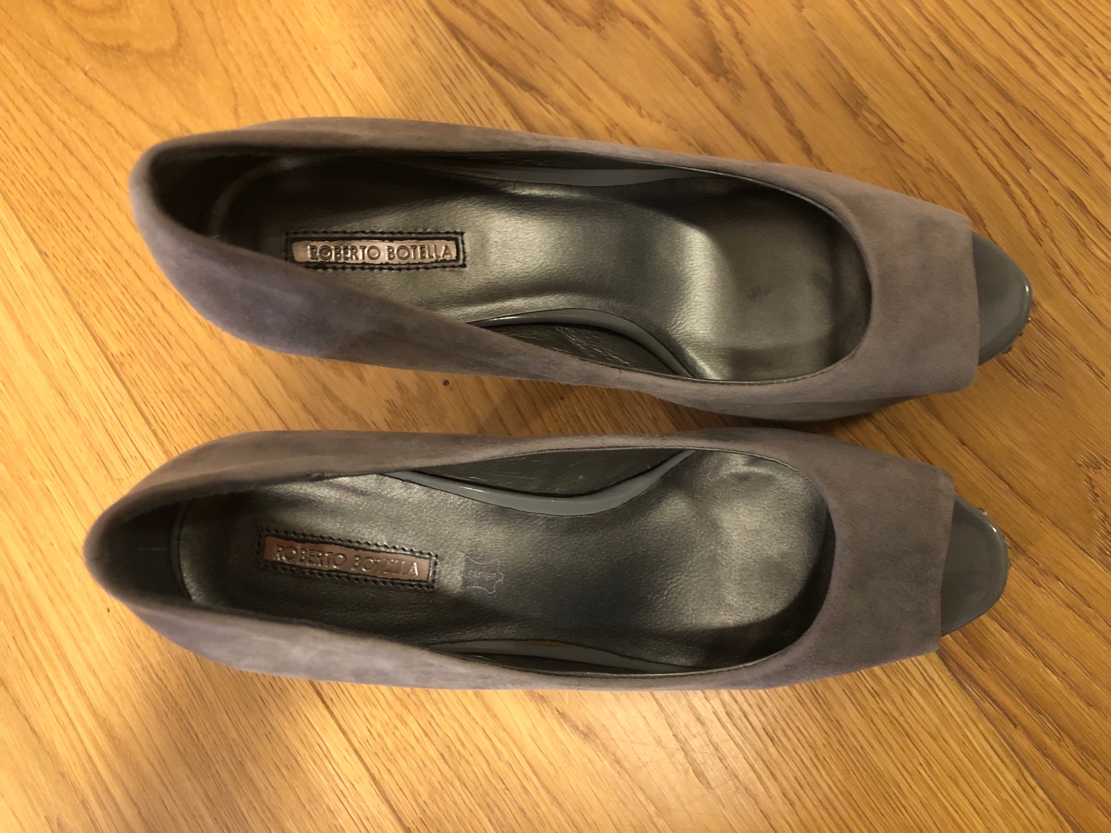 Lodičky č. 39, obuté 4 hodiny, opätok výška 8 cm, farba svetlišedá meniaca na svetle dúha. Značka Prima exclusive. Pôvodná cena 63 eur. Cena bez poštovnėho.