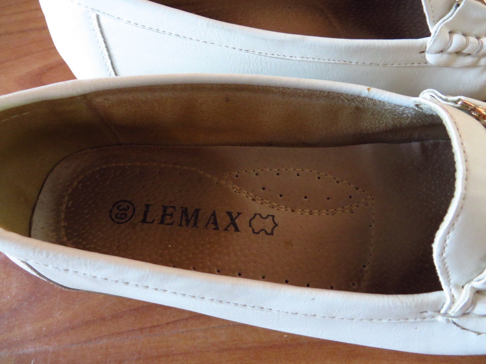 Predám biele nosené dámske mokasíny značky LEMAX, sú kožené, veľmi pohodlné na minimálnom opätku. Vnútorná dĺžka je 25,5 cm. Majú malé fliačky na špičkách, všetko je odfotené a zohľadnené v cene.