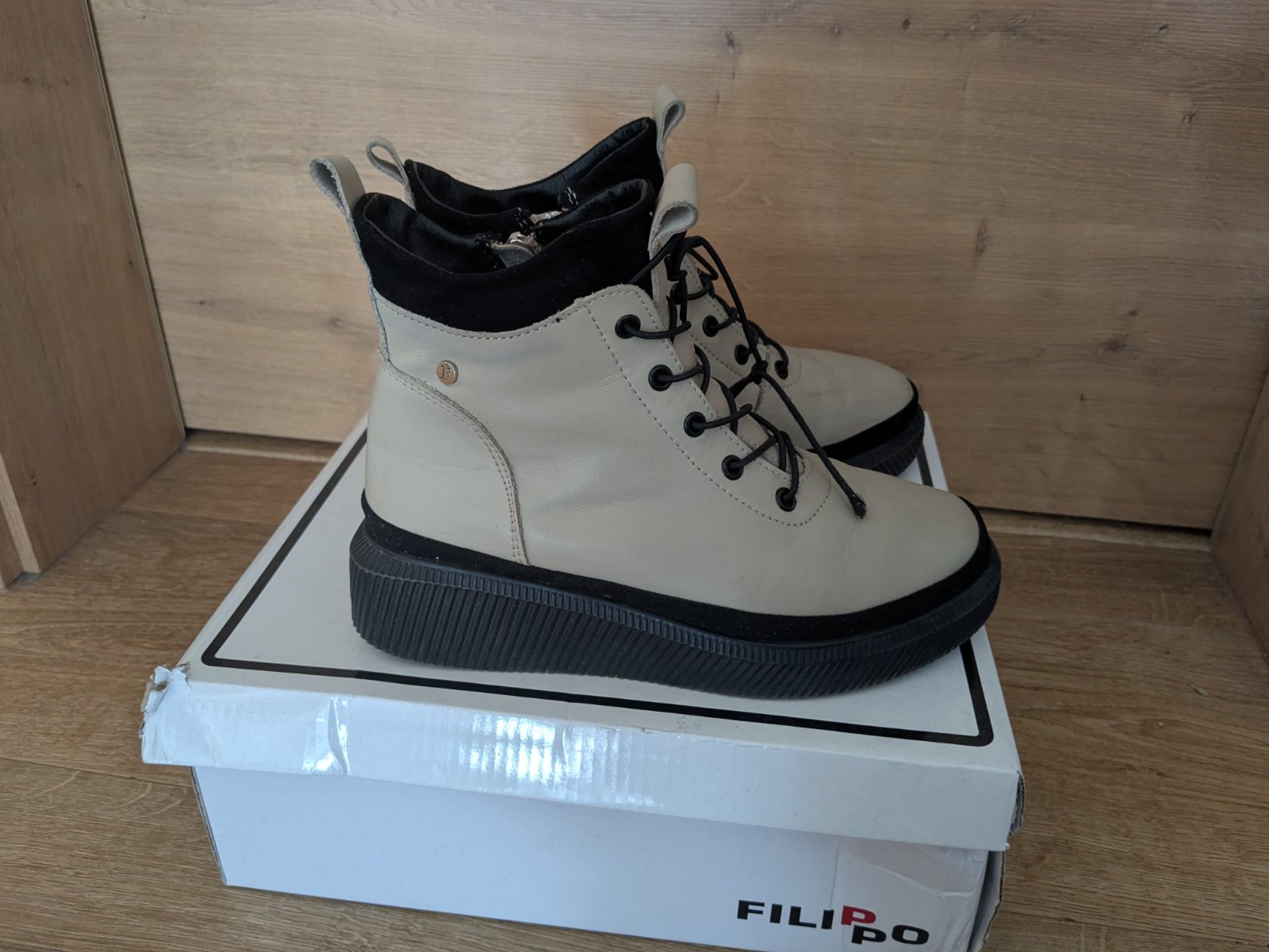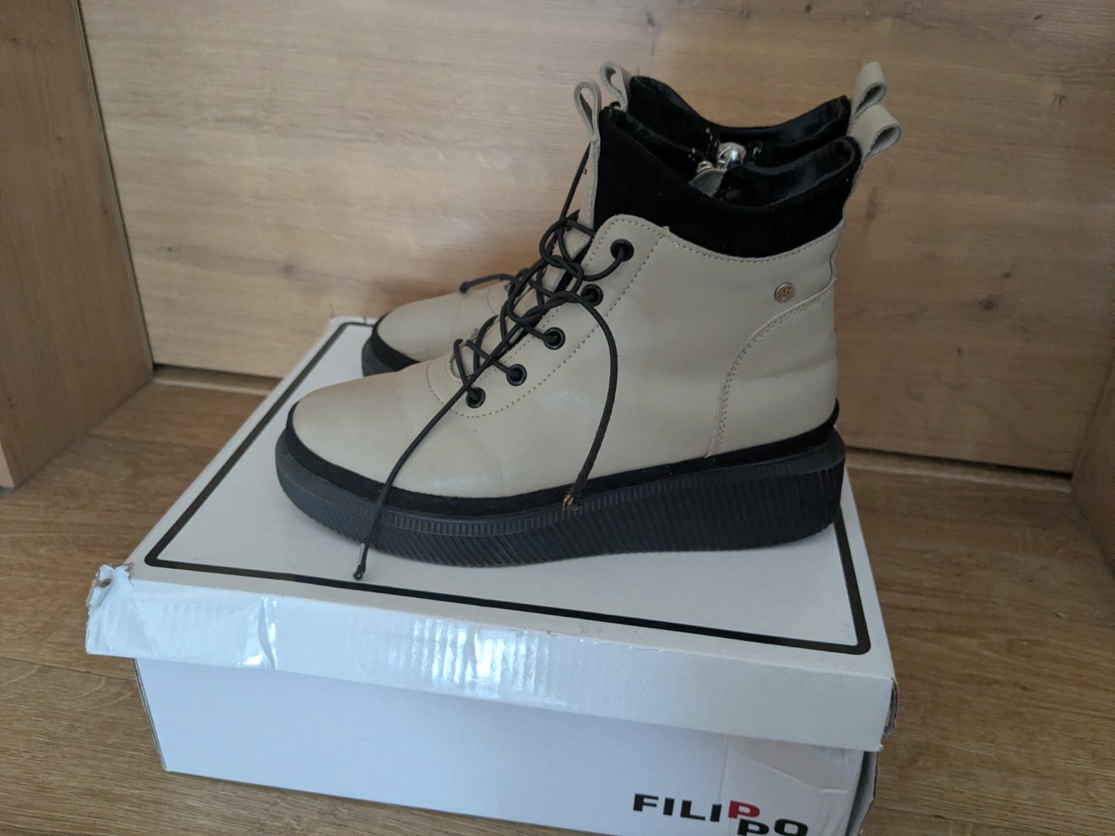 Kvalitné zimné kožené topánky, zn.Filippo. Dobrý stav bez poškodení. PC 79€. Veľkosť 36, VD: dĺžka stielky od okraja po okraj 23cm.