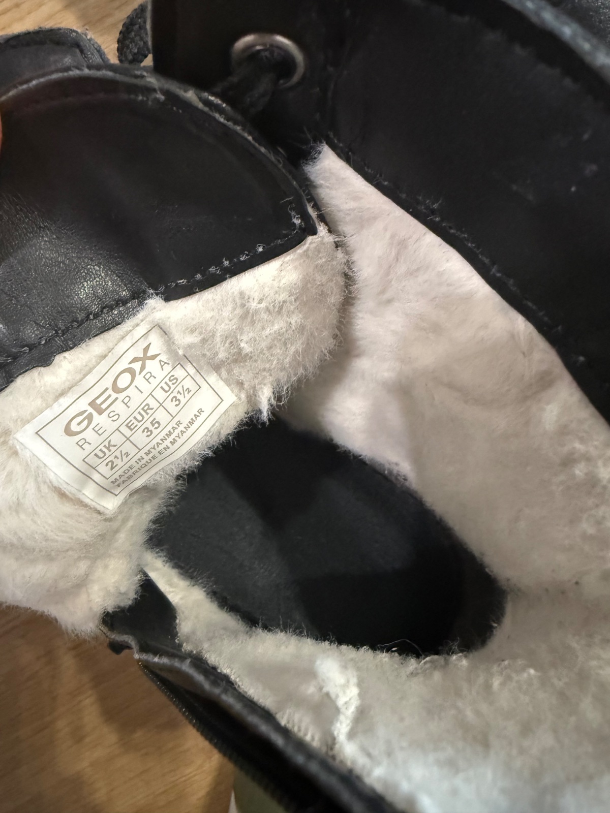 Zateplene kvalitne kozene topanky Geox, vo velkosti 35. Tepla kozusinka, ako nova. Bez poskodeni, nosene na striedacku.